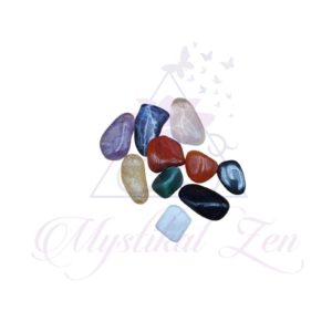 This Chakra kit comes with a small organza bag containing tumblestones representing each of the 7 main Chakra /Energy Centers in our body, plus two extra tumblestones one for grounding and one for protection: