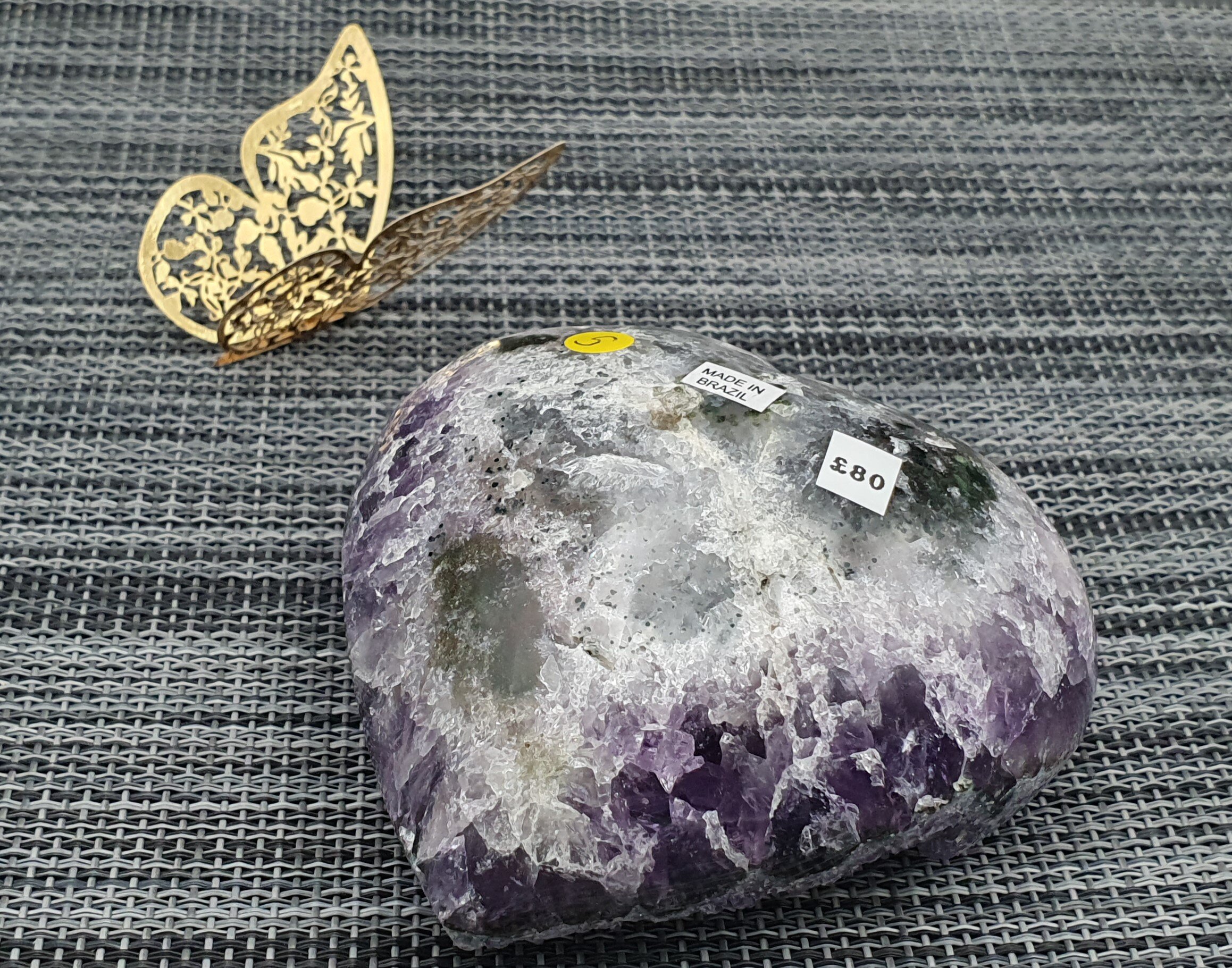 Brazilian Amethyst large cluster heart measuring approx 8.5cm x 8cm x 4.5cm