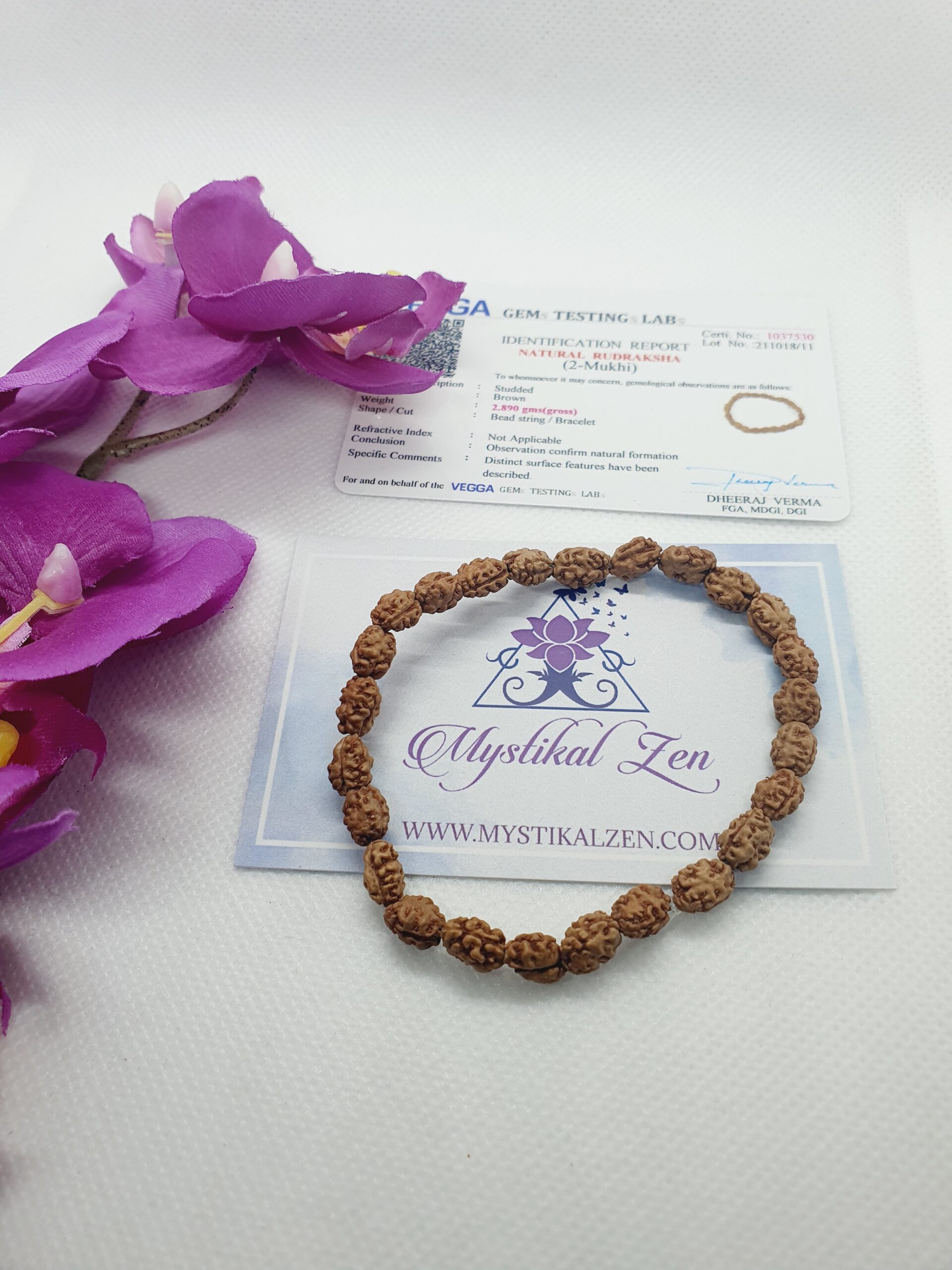 This listing is for one Beautiful 2 Mukhi Natural Rudraksha elastic beaded bracelet.