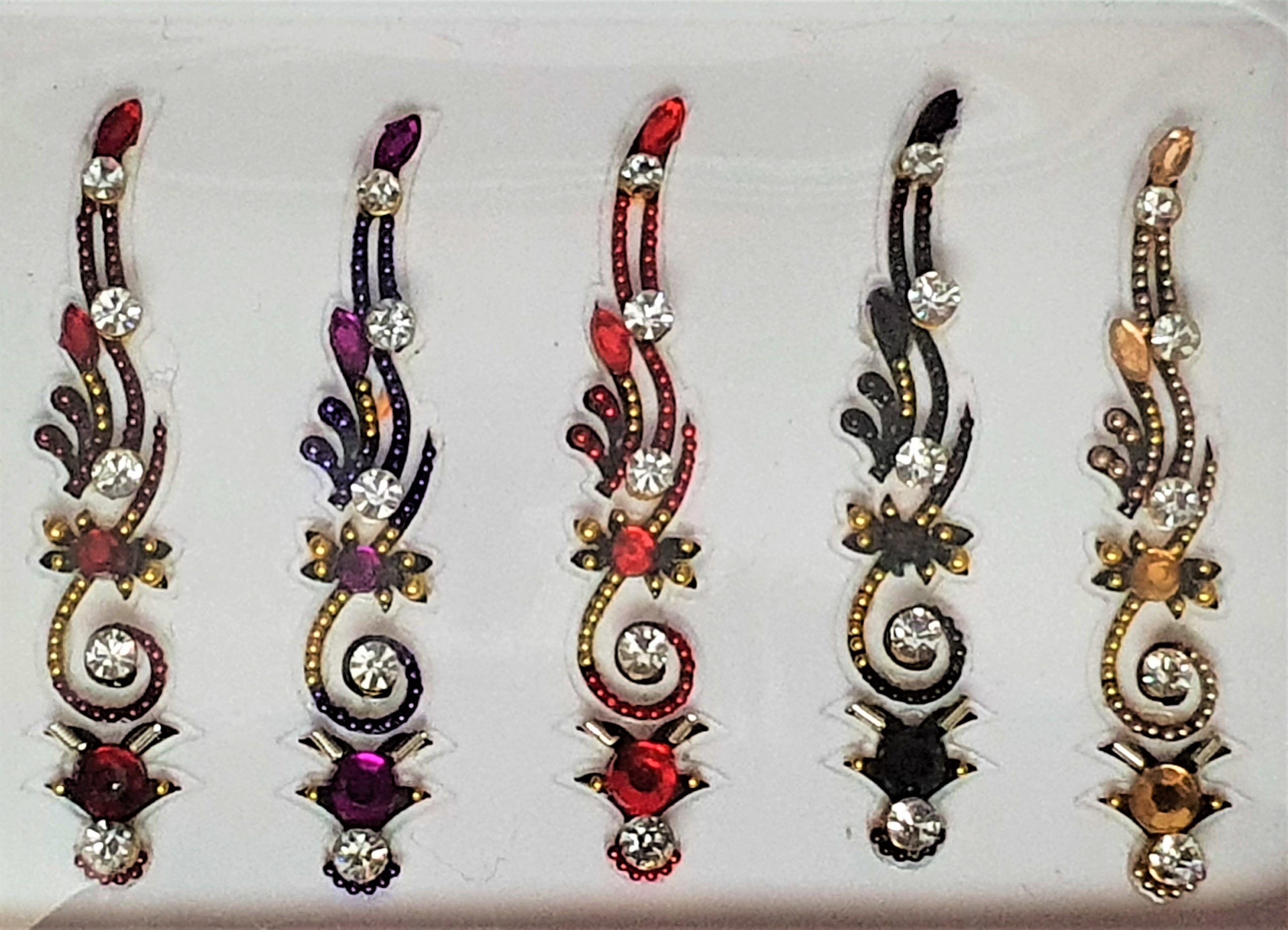 Our quality bindis are self adhesive and are ready to use. We recommend that after use, you put them back in its original packaging for extended wear and reuse. All bindis are delicate, so should be peeled gently out of the package to prevent any damage. Can be used as embellishments for crafts and scrapbooking too.