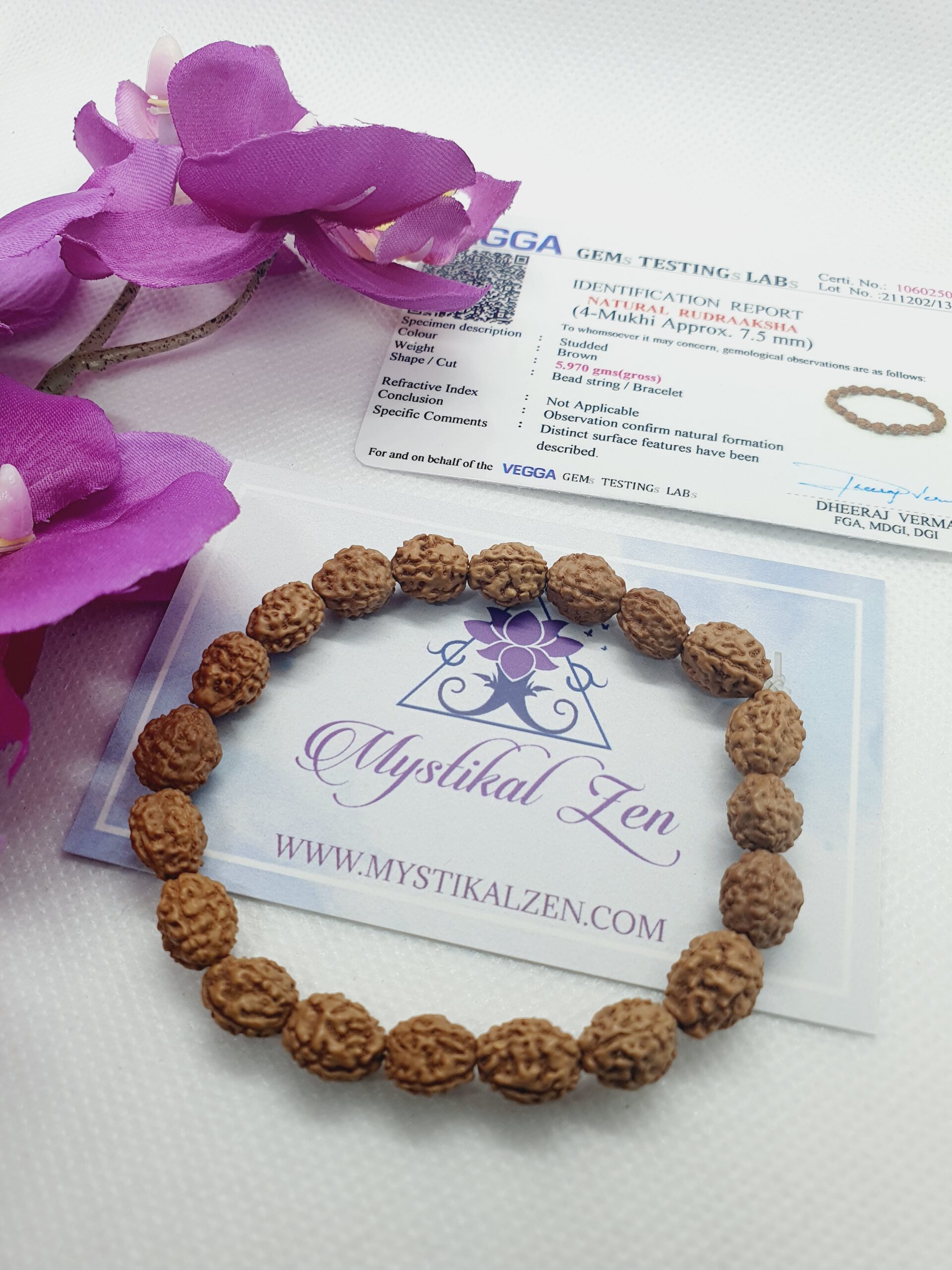 This listing is for one Beautiful 4 Mukhi Natural Rudraksha elastic beaded bracelet.