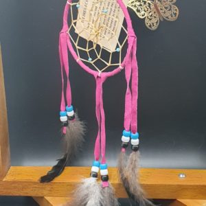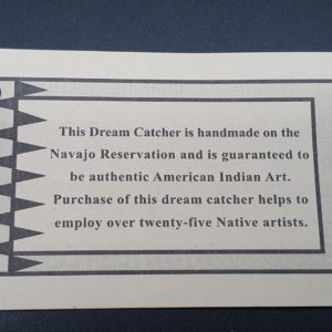 This Dream catcher is handmade on the Navajo Reservation and guaranteed to be authentic American Indian Art. Purchase of this dream catcher helps employ Native Artists.