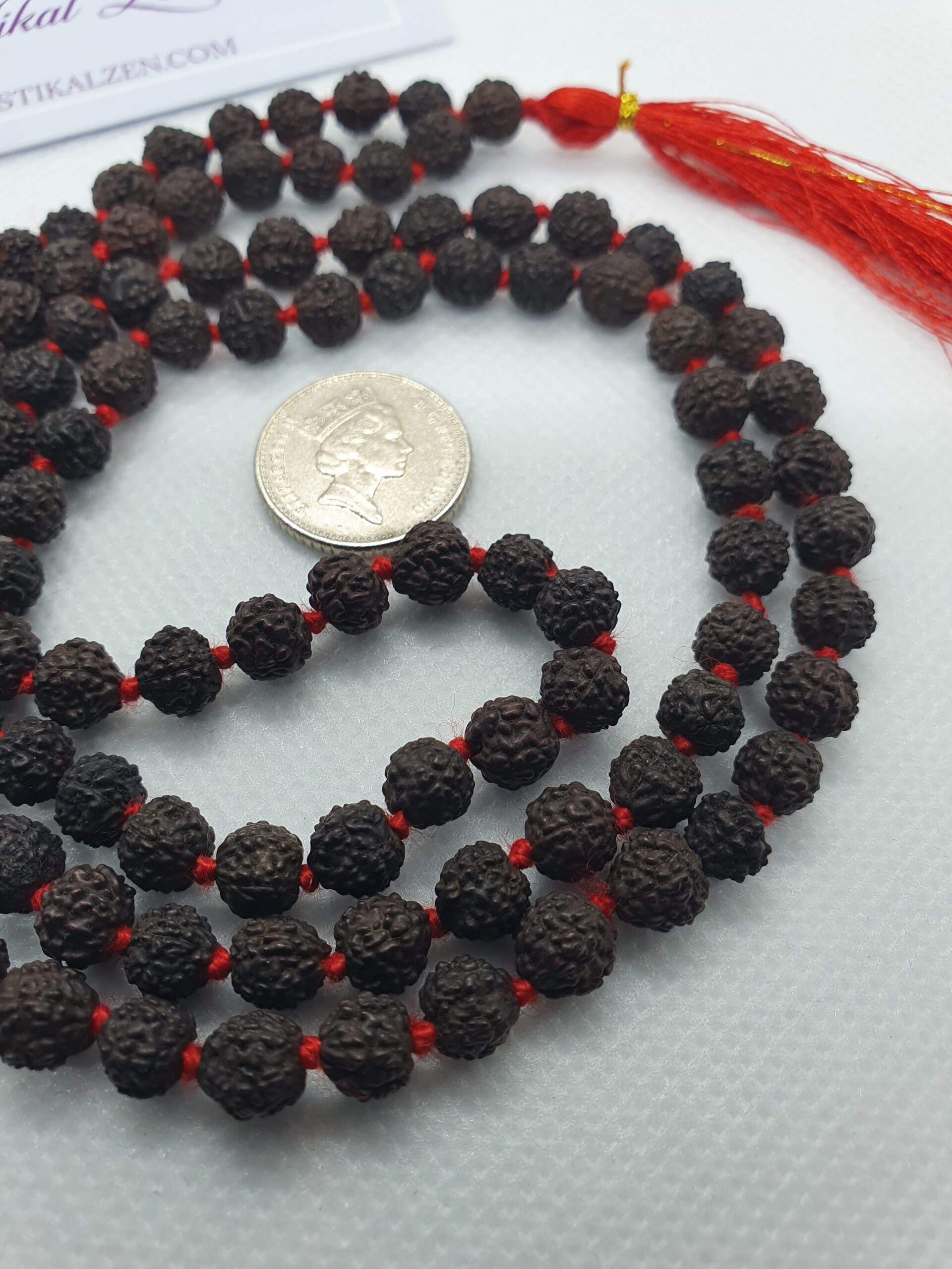 Each bead is 6mm wide. Length of mala is Approx. 37cm (excluding red tassel). Average weight 11g -12g
