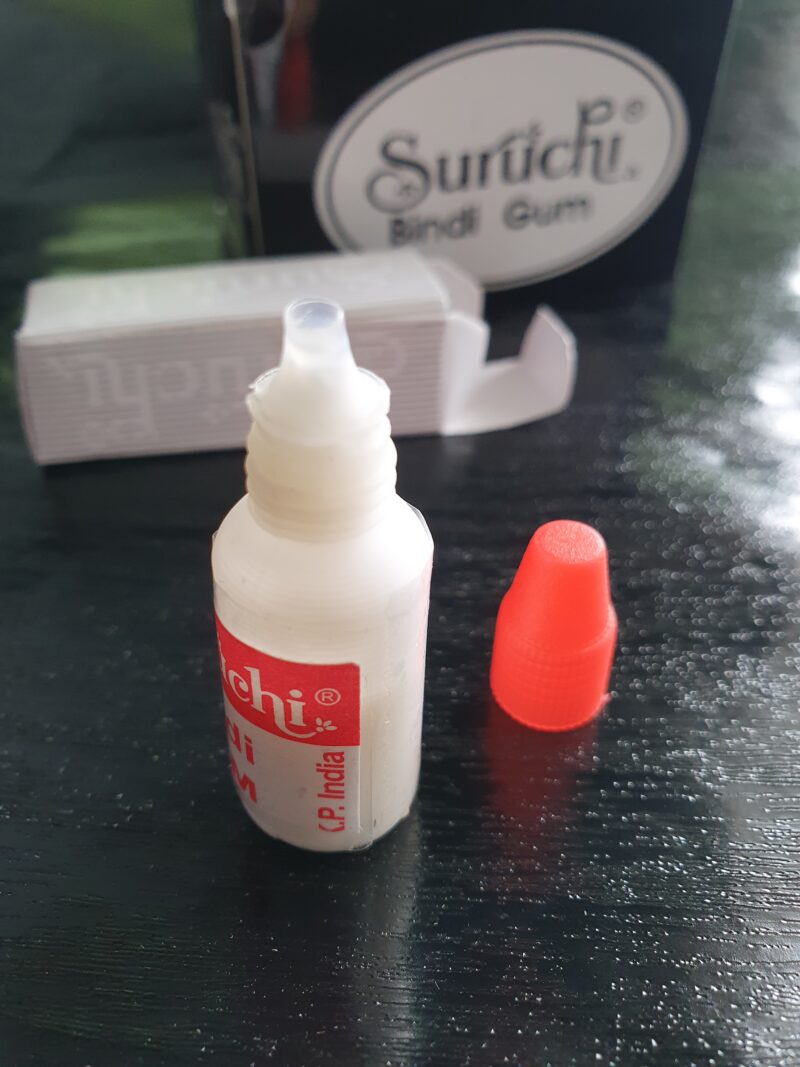 You will need to use a safety pin to make a hole in the top of the nozzle when you need to use the glue. We advise you put a small amount on the back of the sticker and apply to skin once it is slightly dry. The glue will dry clear and provide good level of stickiness to your skin.