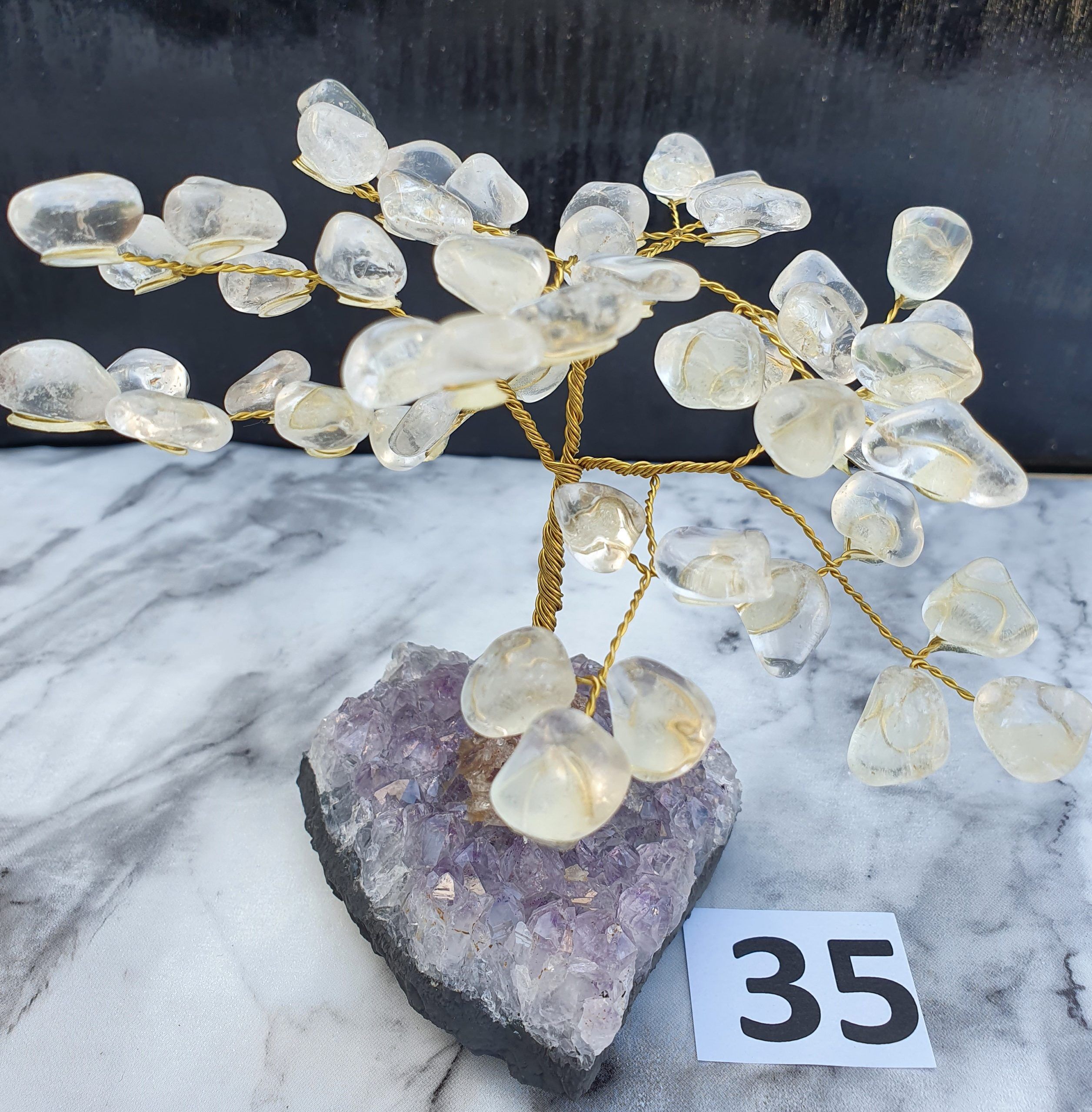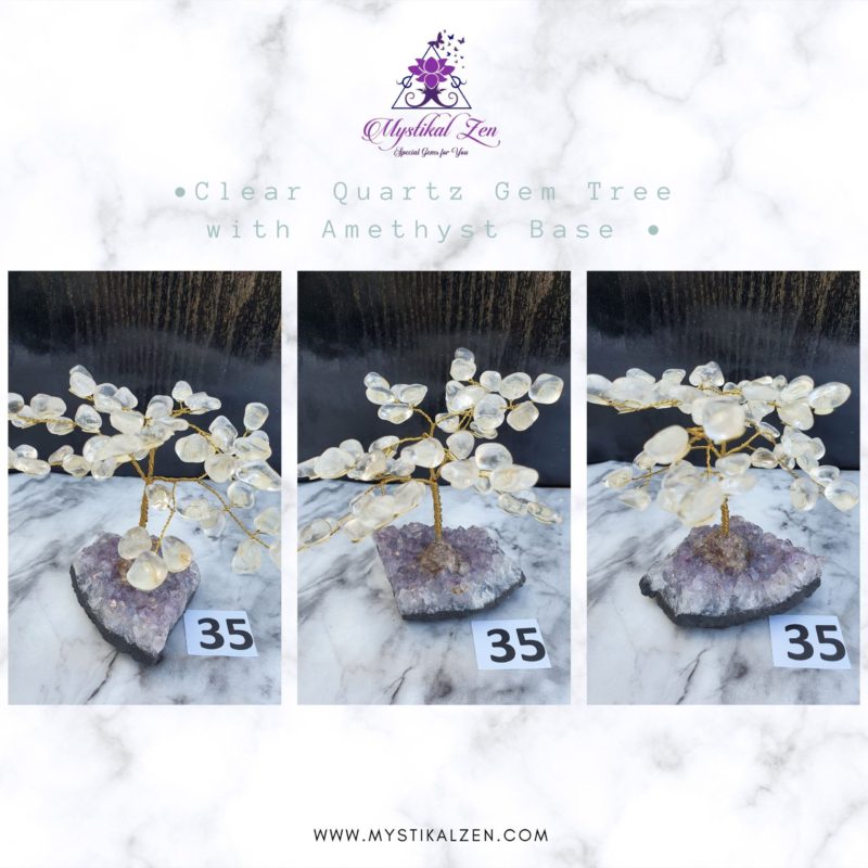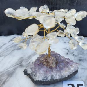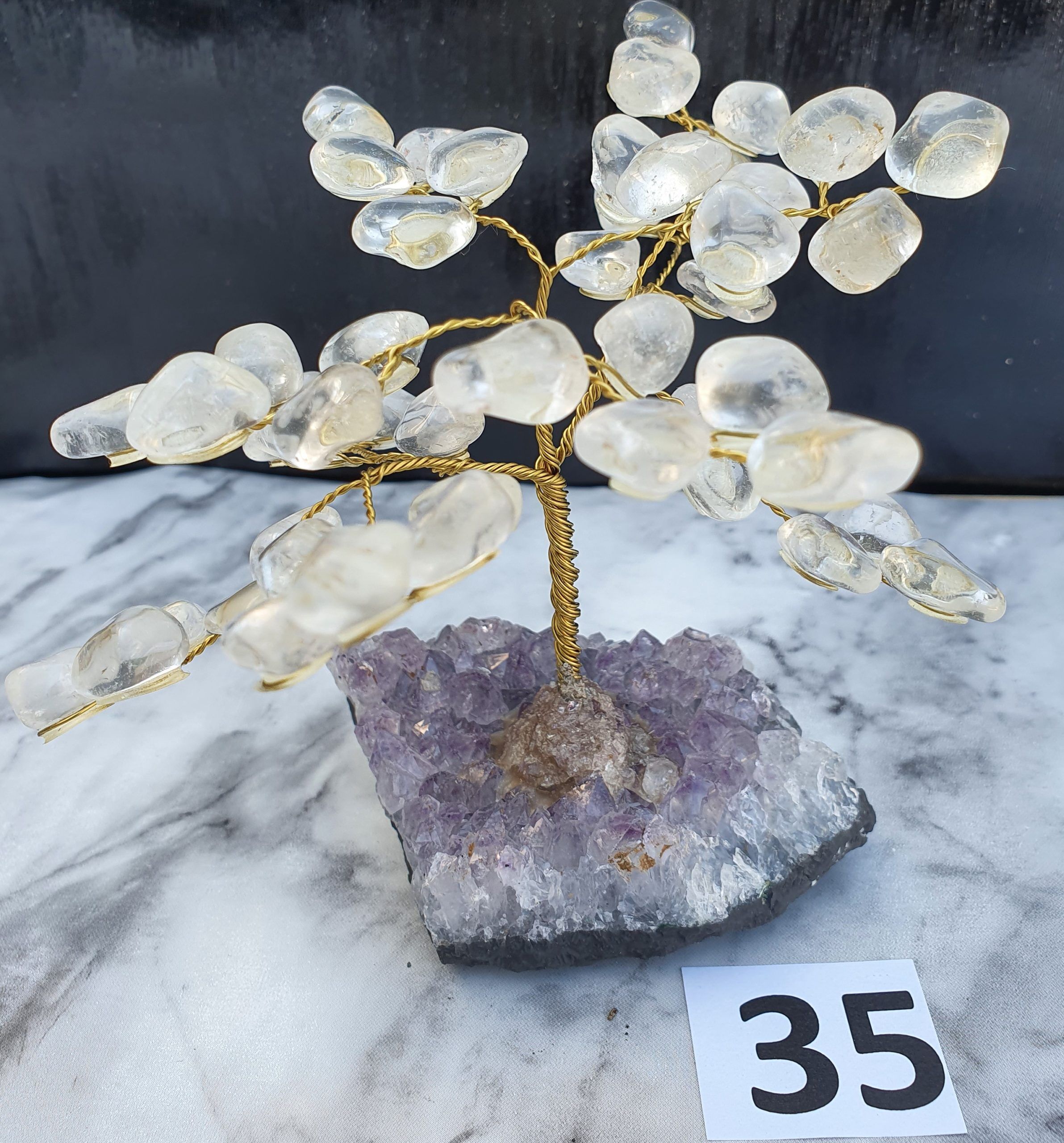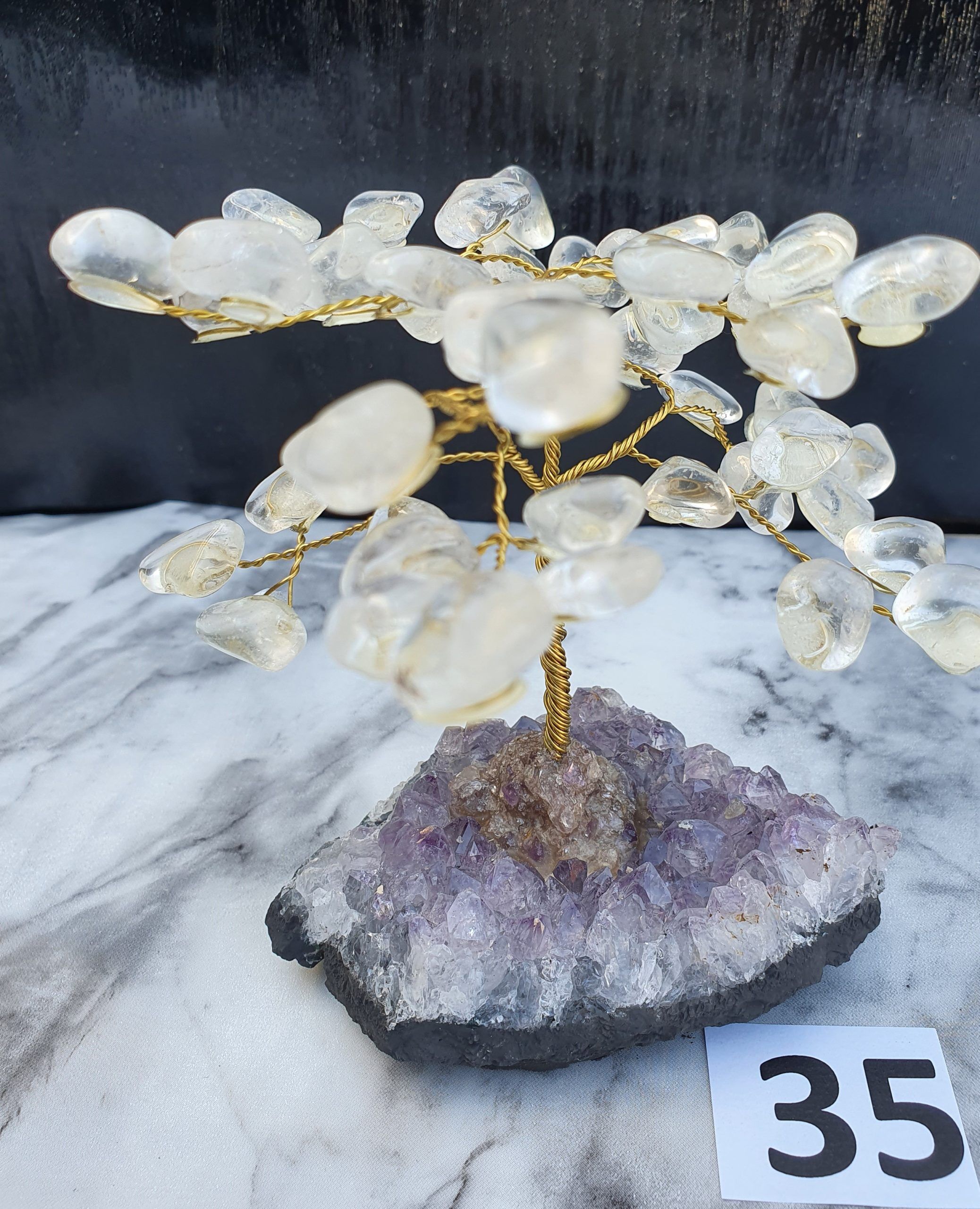Beautiful Clear Quartz gem healing tree with amethyst crystal base. Can be placed in the living space or bedroom for aiding concentration, clarity and harmonising all the chakras energy centres.