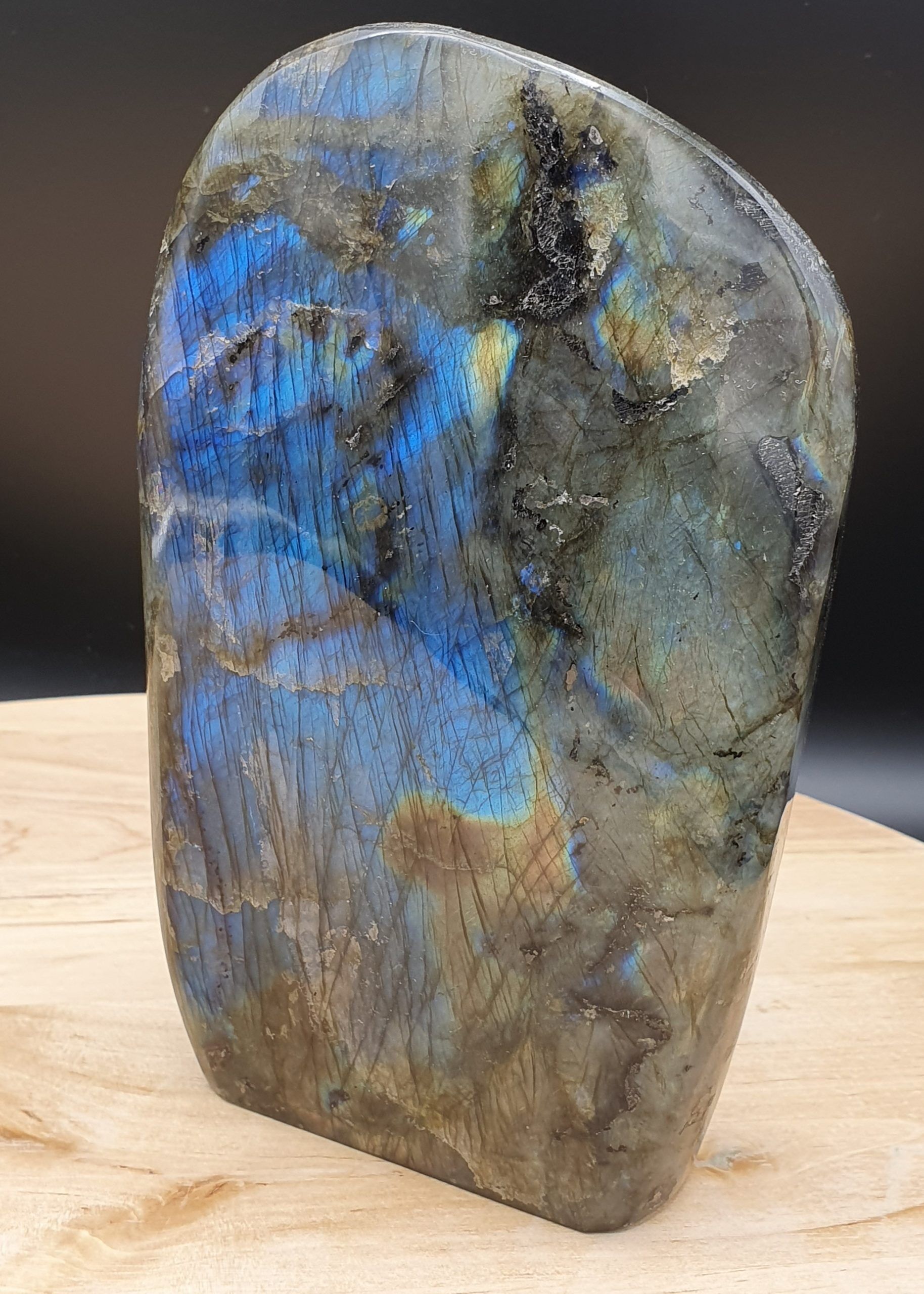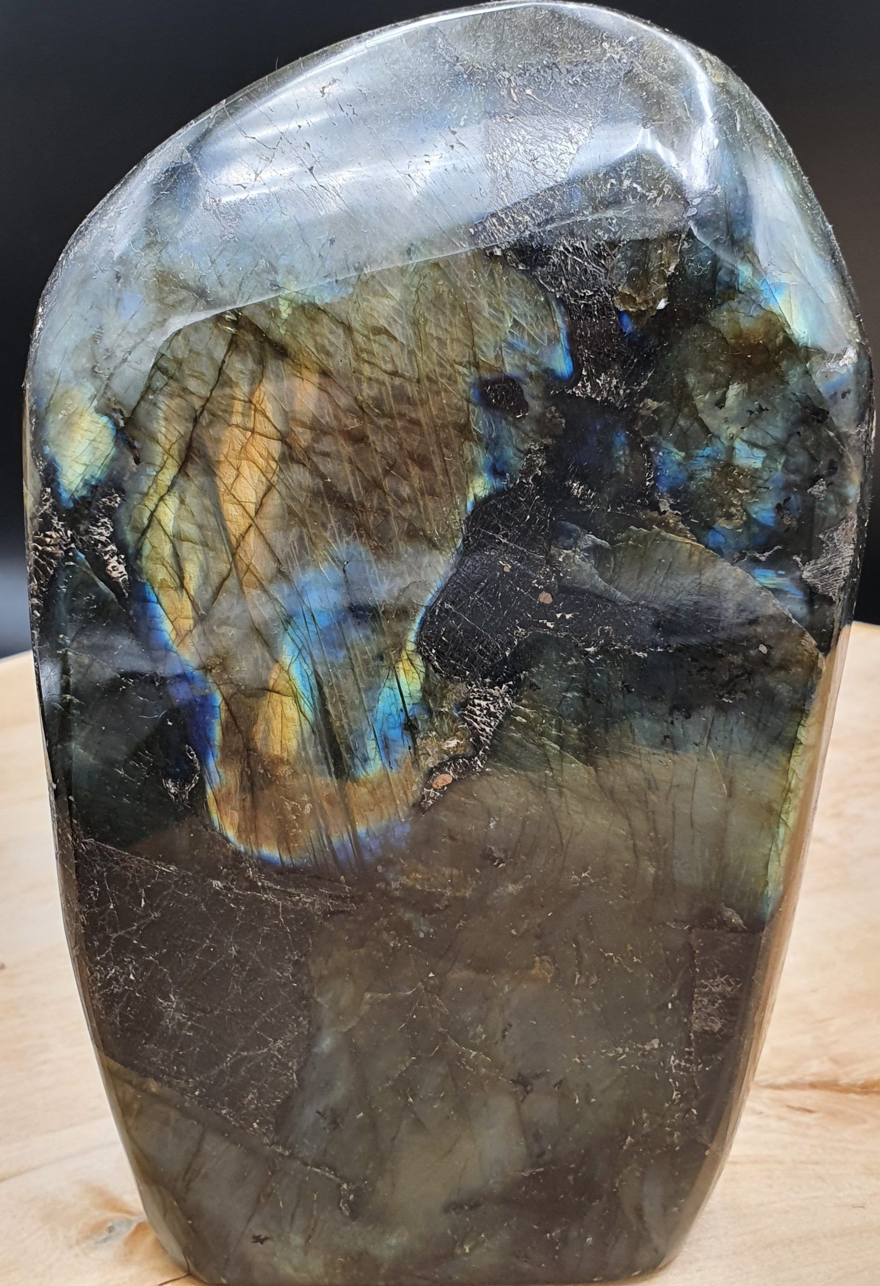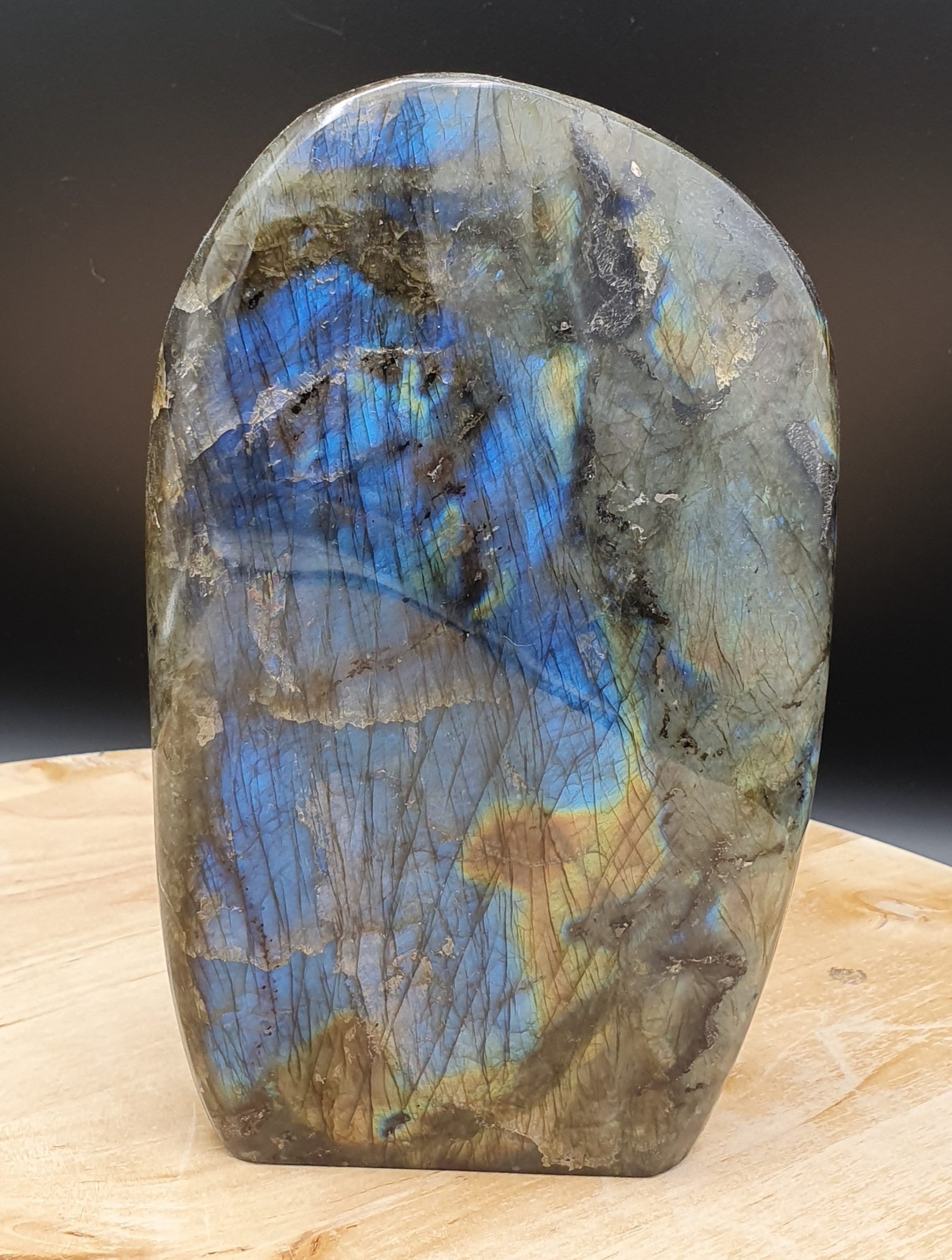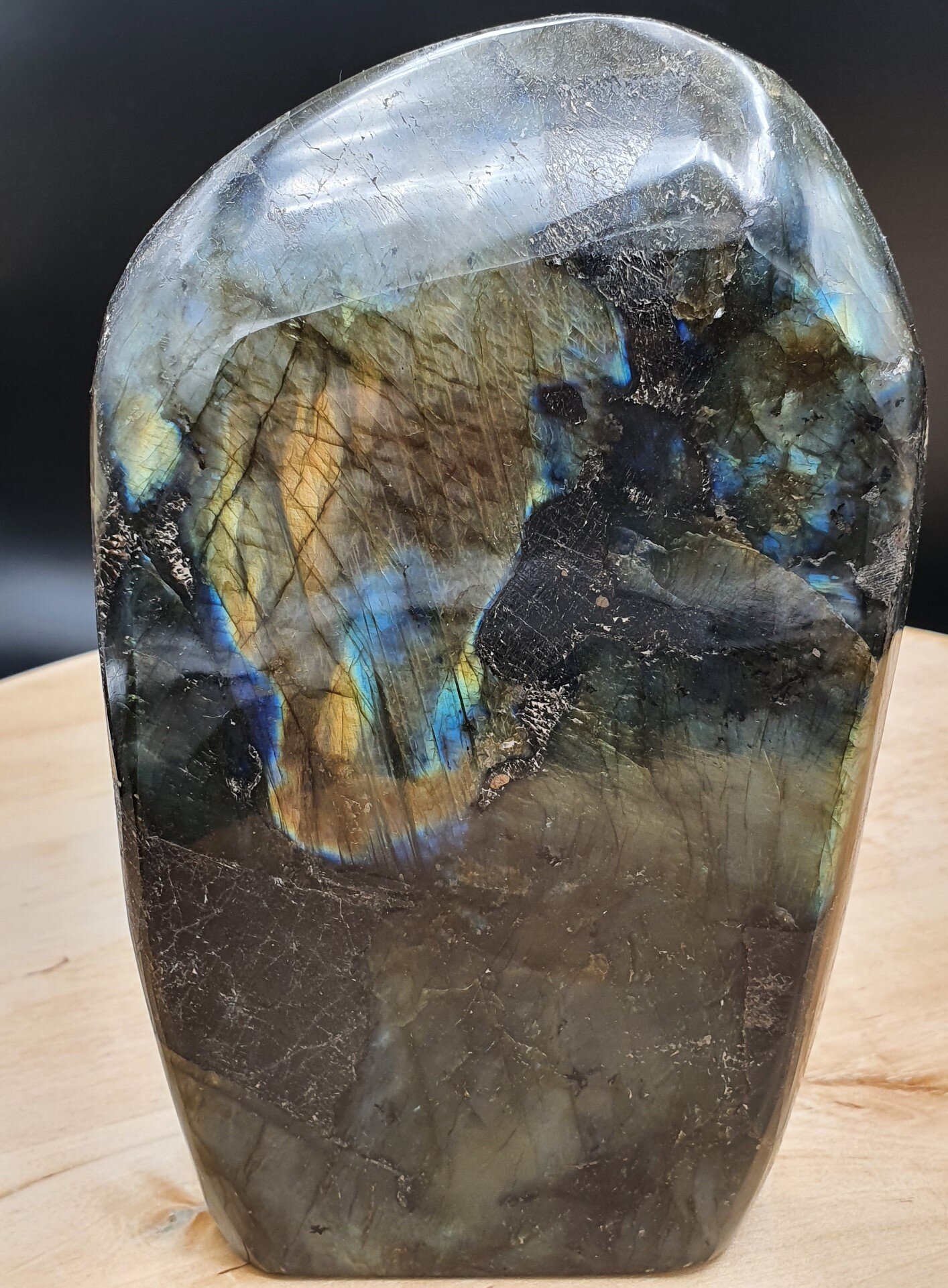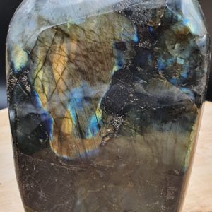 A natural polished piece of Labradorite. This beautiful piece has lots of deep blue flashes, yellow and greens.