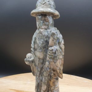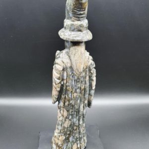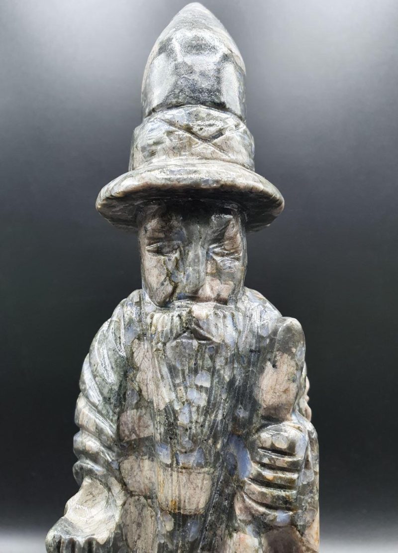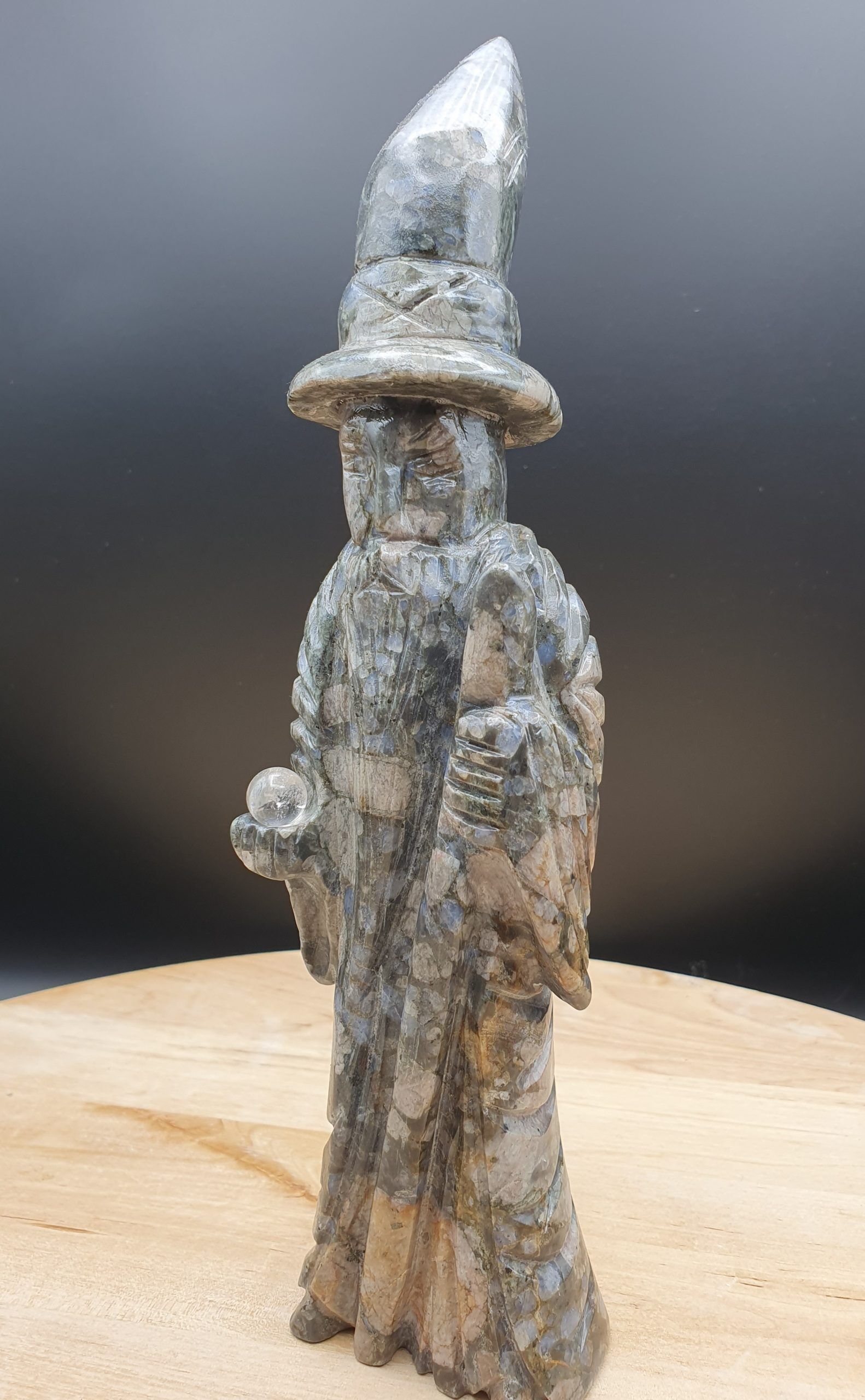 A Rare Wizard carved out of unpolished Labradorite. The wizard comes with a small clear quartz ball which can be removed if required.