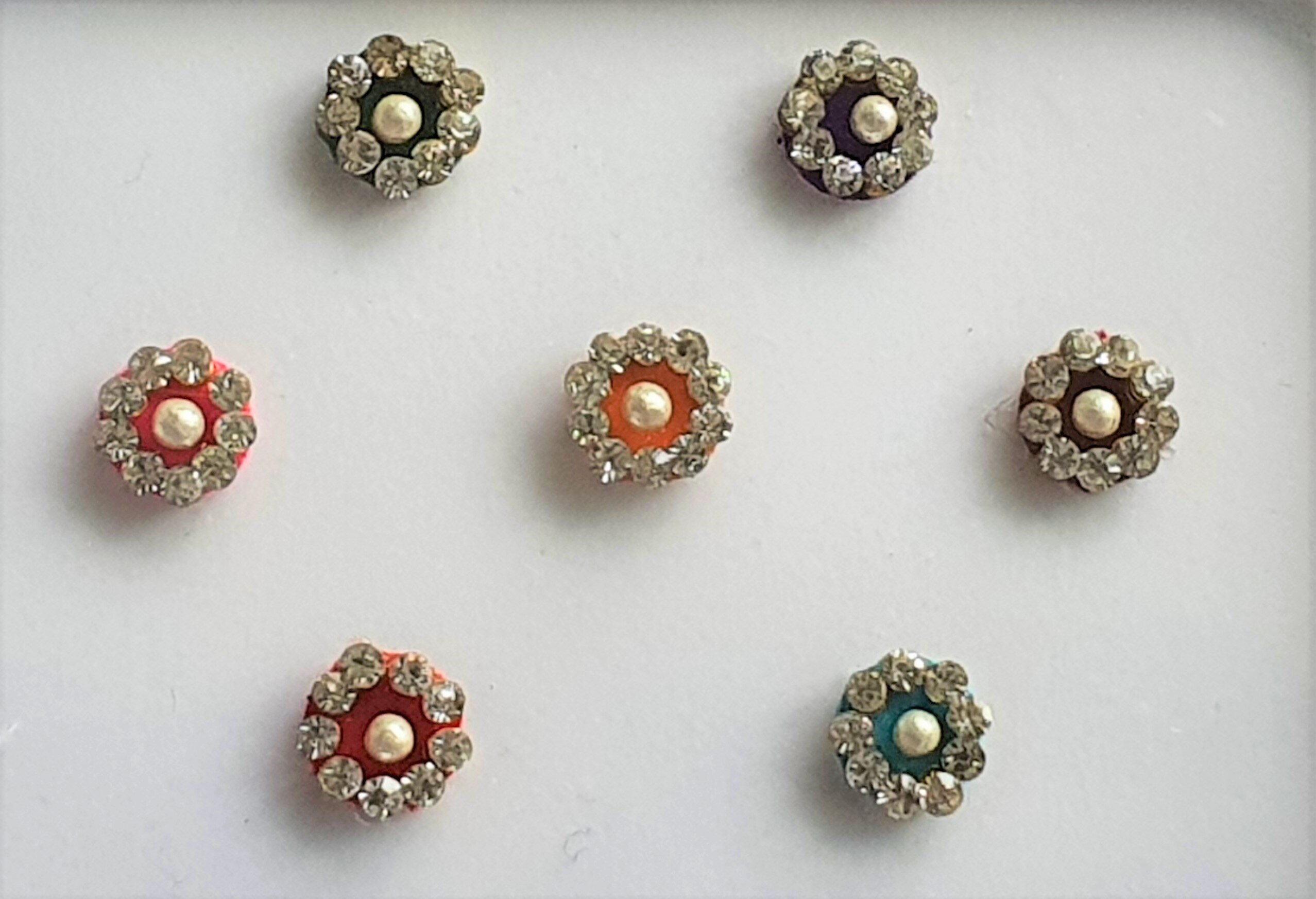 Our quality bindis are self adhesive and are ready to use. We recommend that after use, you put them back in its original packaging for extended wear and reuse. All bindis are delicate, so should be peeled gently out of the package to prevent any damage. Can be used as embellishments for crafts and scrapbooking too.