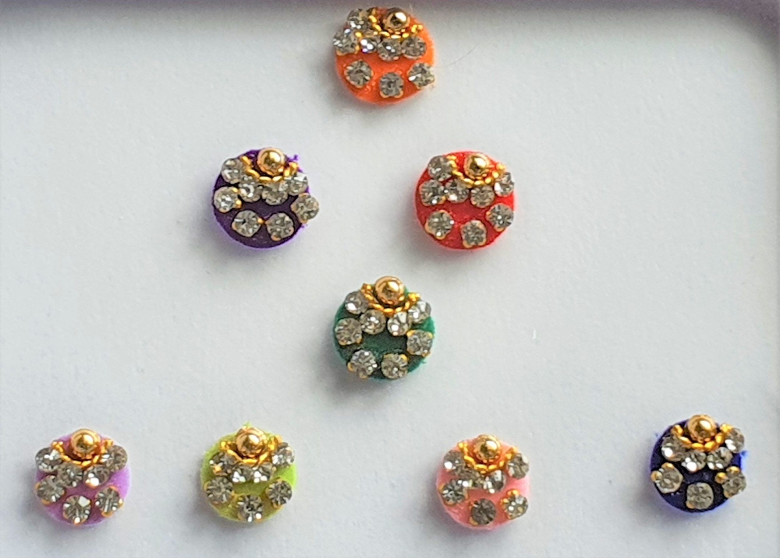 Our quality bindis are self adhesive and are ready to use. We recommend that after use, you put them back in its original packaging for extended wear and reuse. All bindis are delicate, so should be peeled gently out of the package to prevent any damage. Can be used as embellishments for crafts and scrapbooking too.