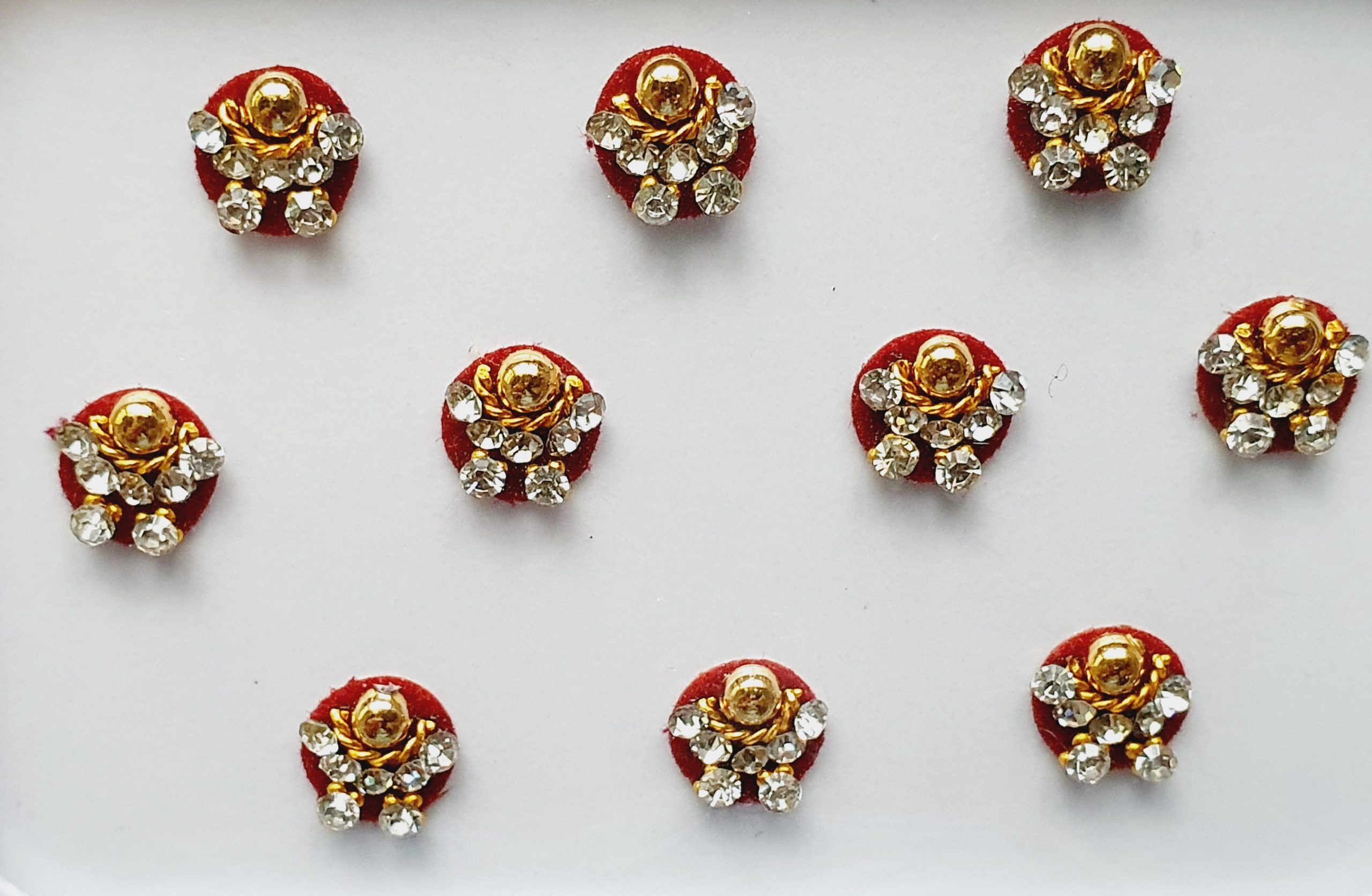 Our quality bindis are self adhesive and are ready to use. We recommend that after use, you put them back in its original packaging for extended wear and reuse. All bindis are delicate, so should be peeled gently out of the package to prevent any damage. Can be used as embellishments for crafts and scrapbooking too.
