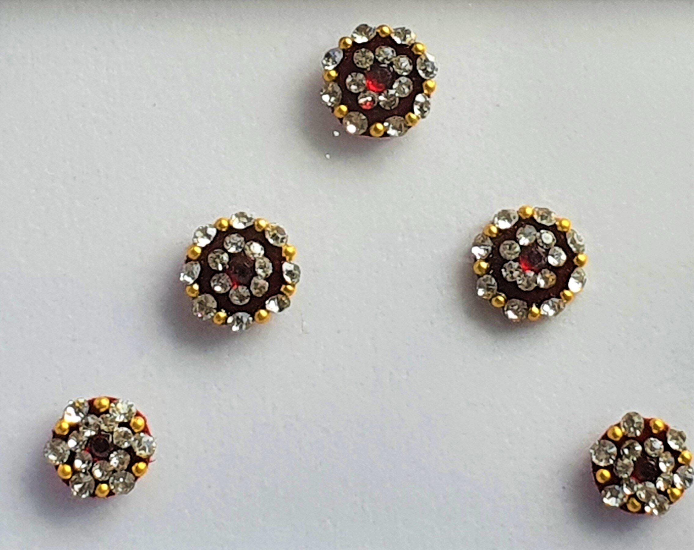 Our quality bindis are self adhesive and are ready to use. We recommend that after use, you put them back in its original packaging for extended wear and reuse. All bindis are delicate, so should be peeled gently out of the package to prevent any damage. Can be used as embellishments for crafts and scrapbooking too.