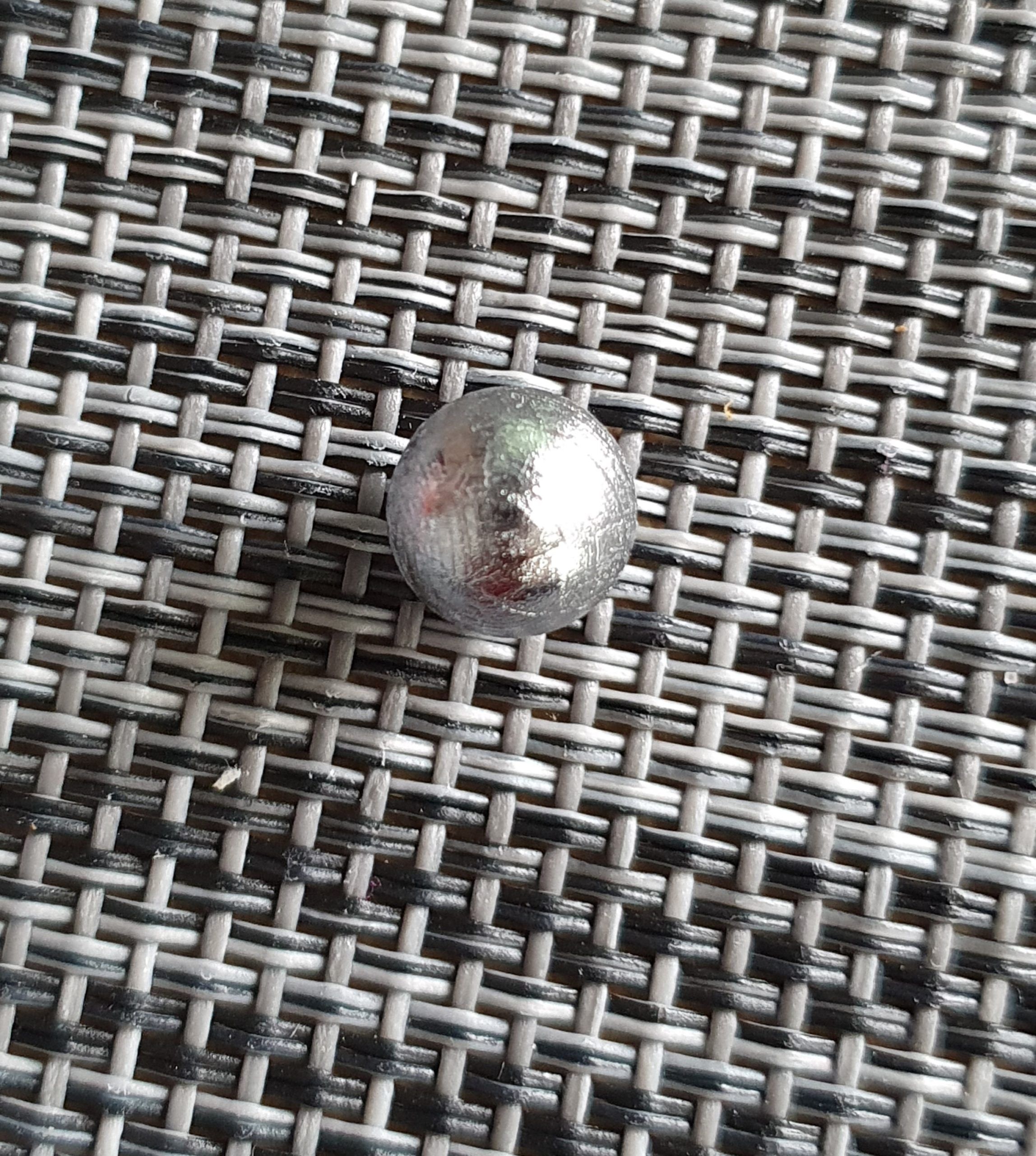 This is a rare meteorite (muoniomalusta) small silver sphere. Weighs 3g and is 7mm in diameter