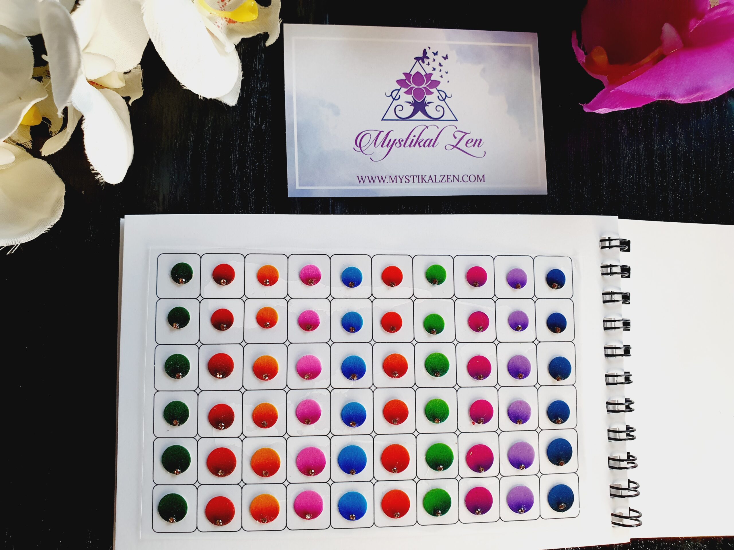 These books contain 6 pages of bindis in assorted design and colours, please note each book may vary slightly in design and colours.