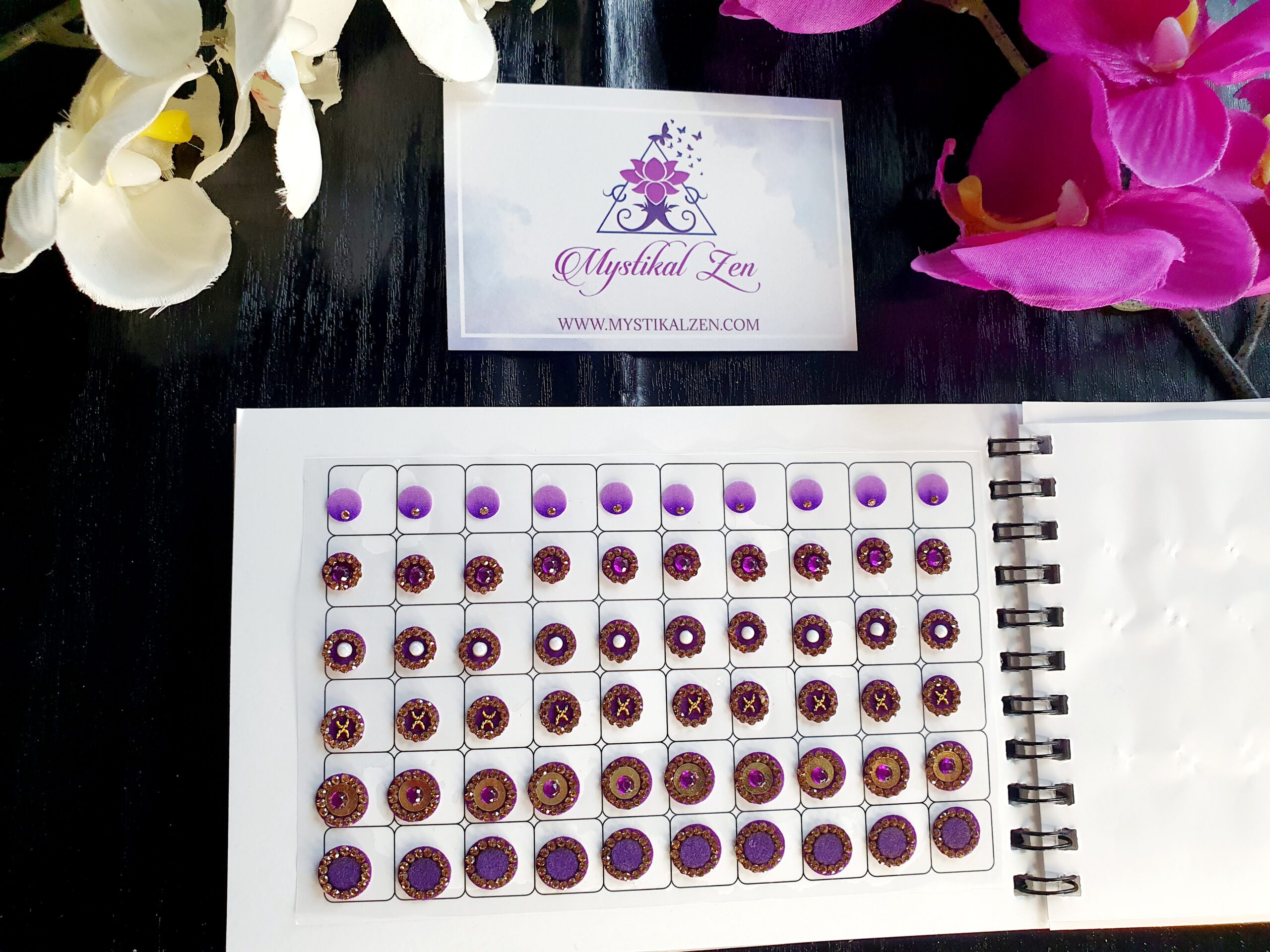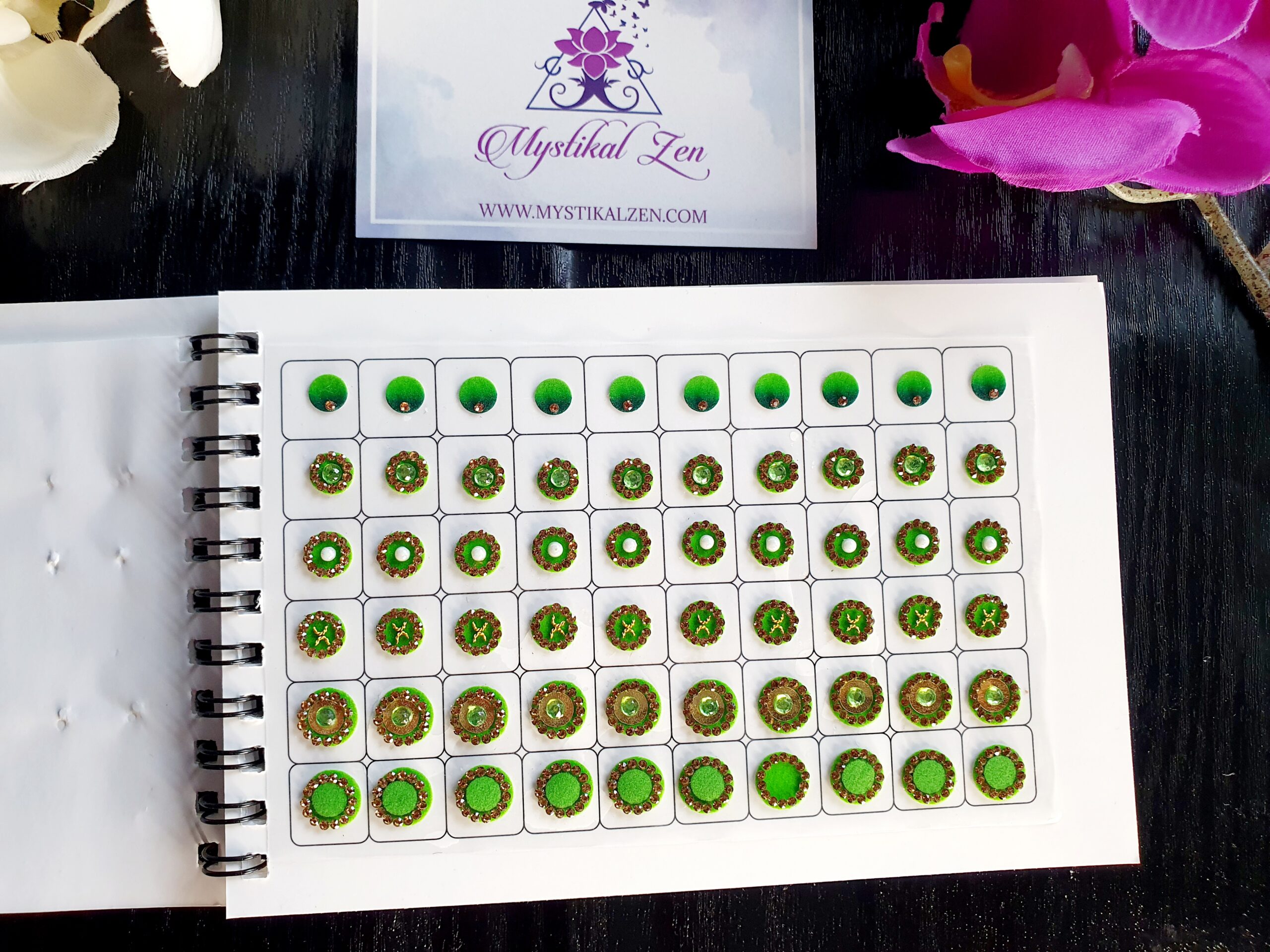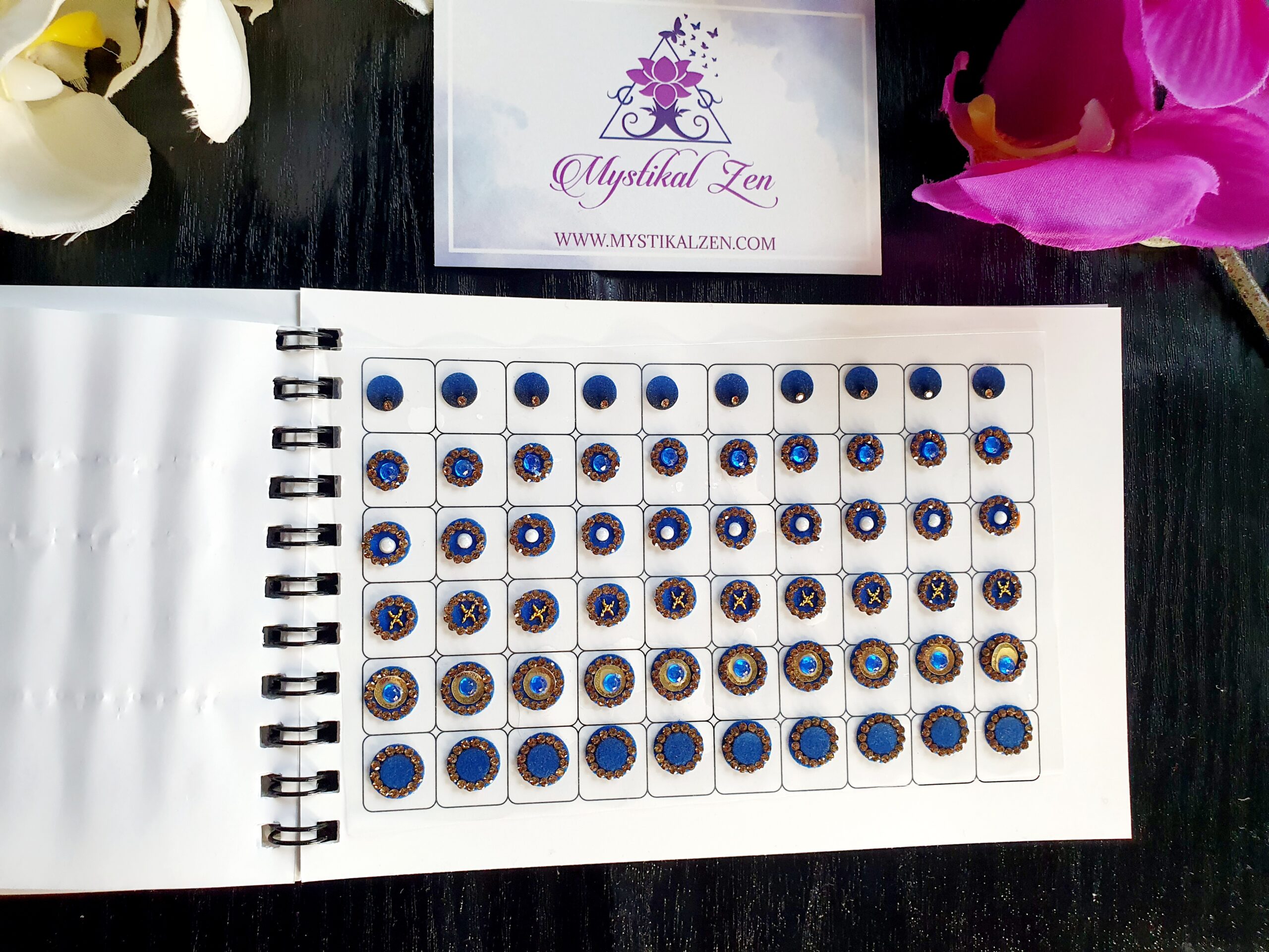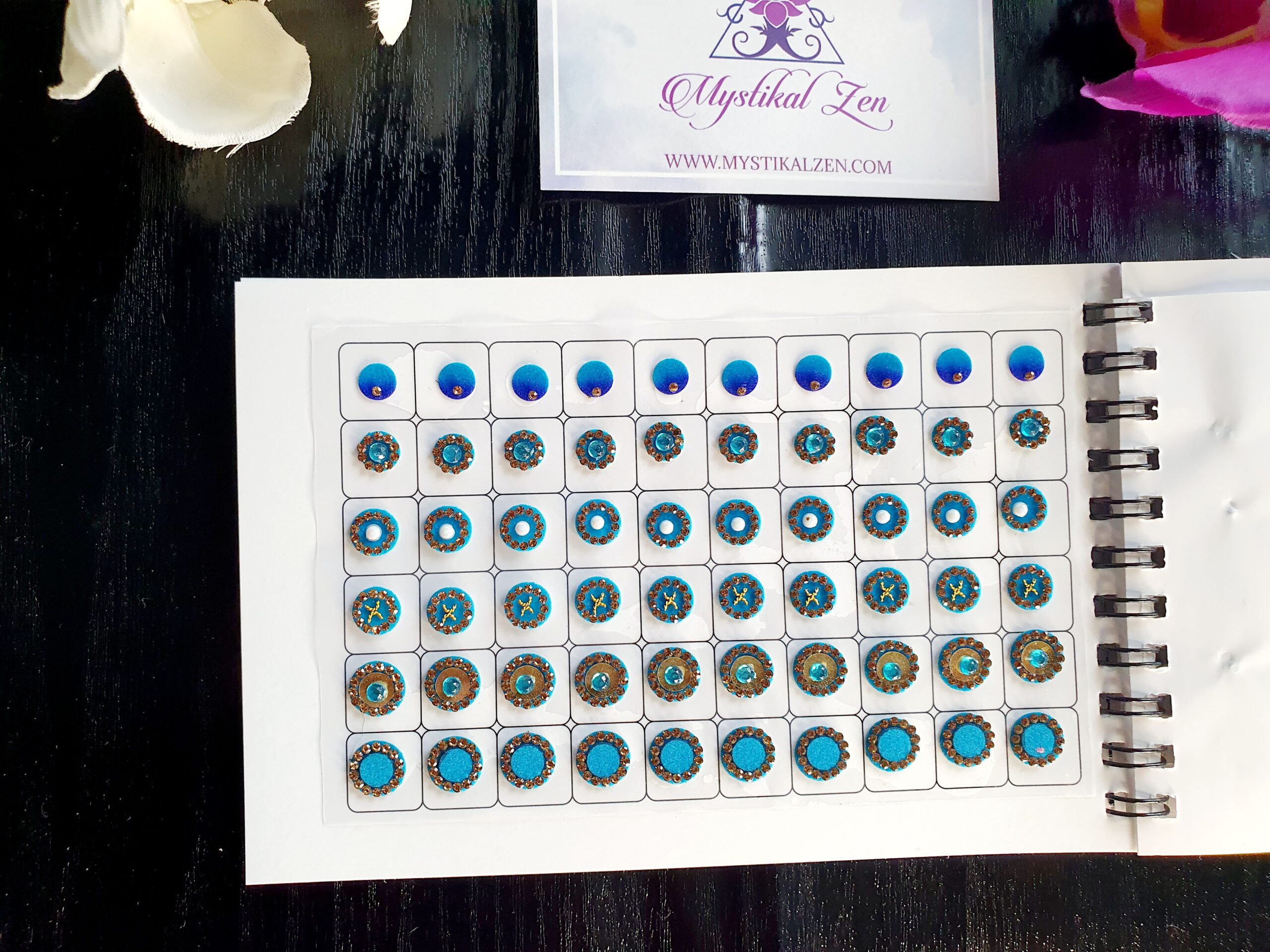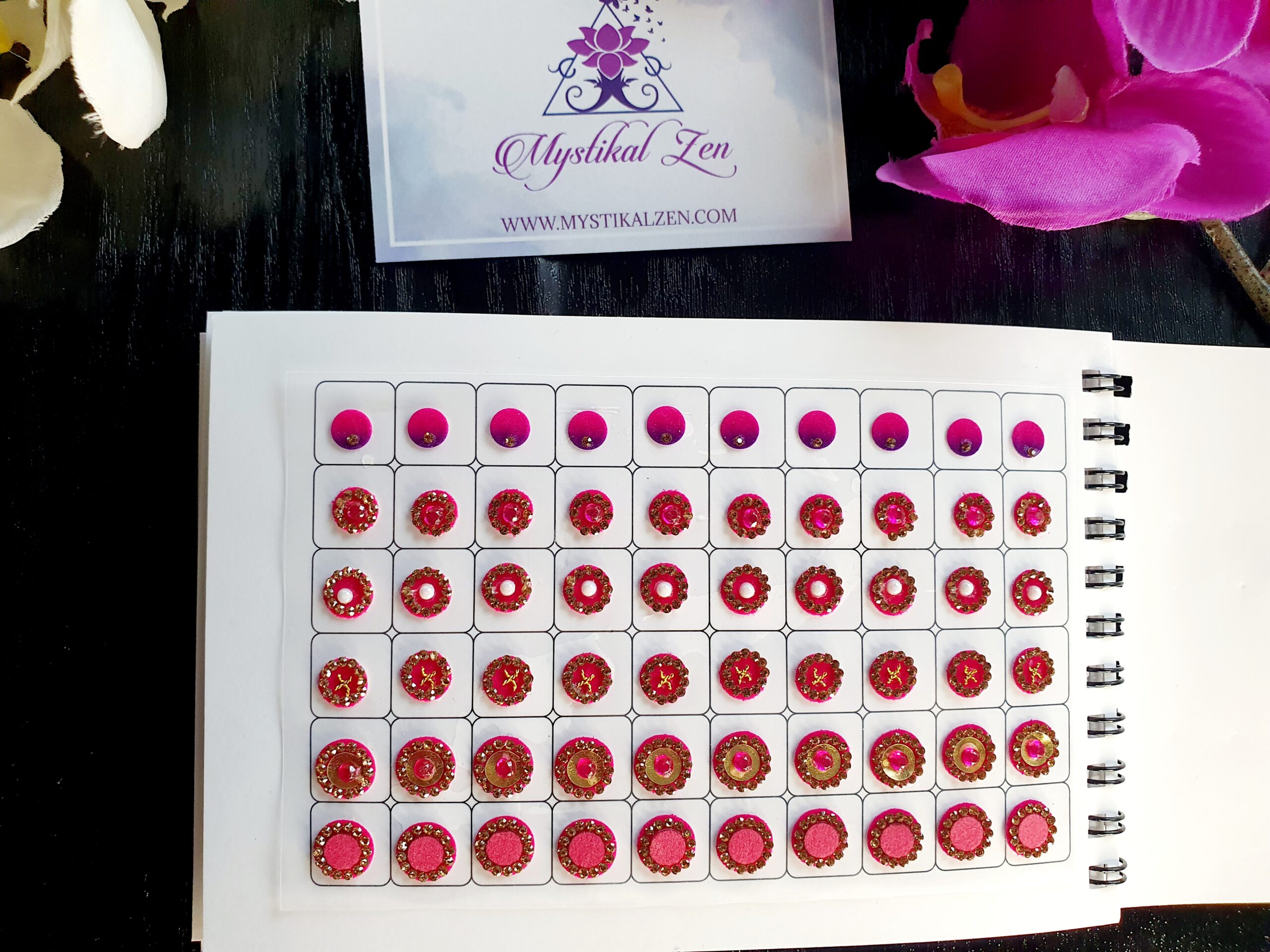 Our quality bindis are self adhesive and are ready to use. We recommend that after use, you put them back in its original packaging for extended wear and reuse. All bindis are delicate, so should be peeled gently out of the package to prevent any damage. Can be used as embellishments for crafts and scrapbooking too.