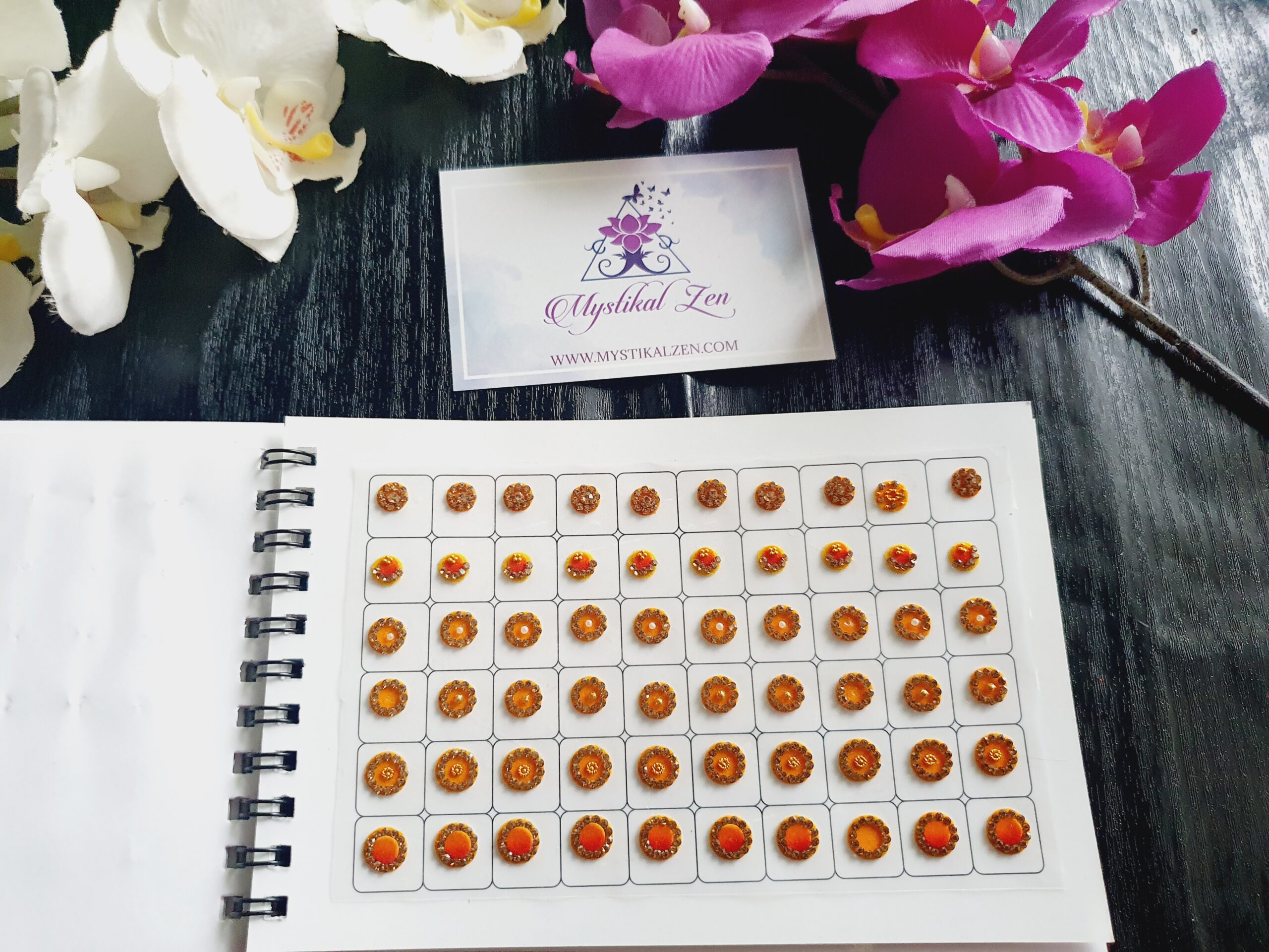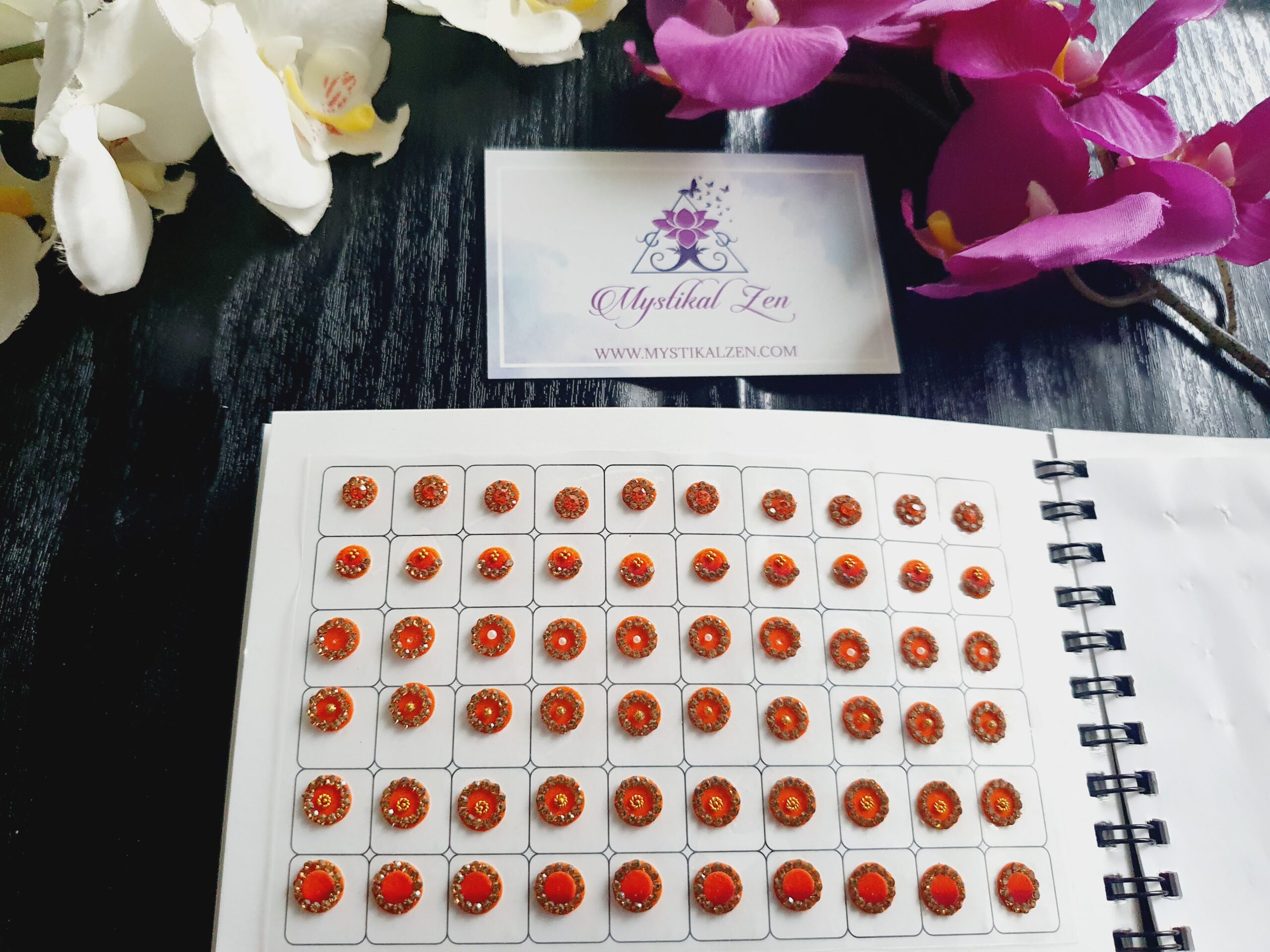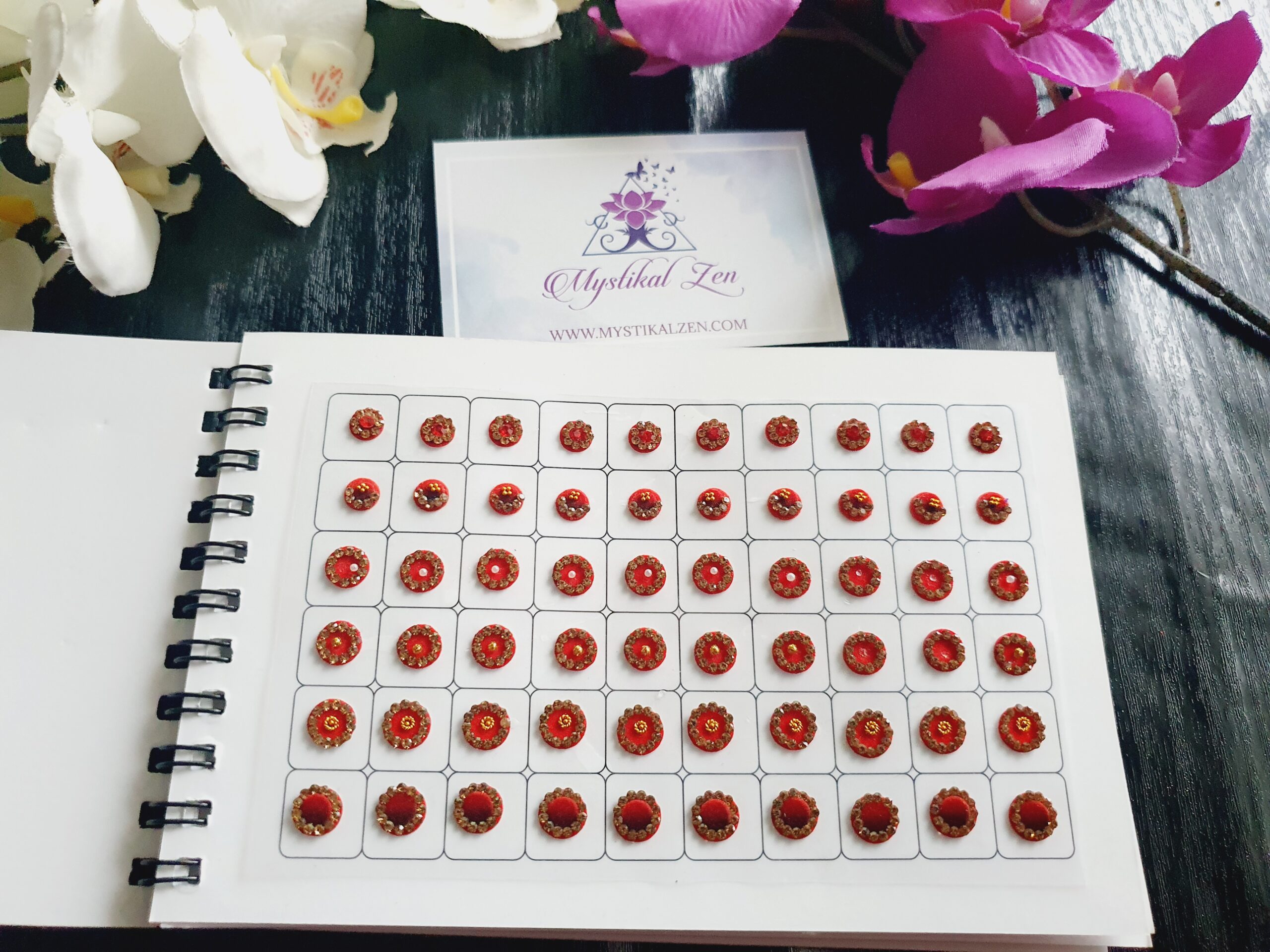 Our quality bindis are self adhesive and are ready to use. We recommend that after use, you put them back in its original packaging for extended wear and reuse. All bindis are delicate, so should be peeled gently out of the package to prevent any damage. Can be used as embellishments for crafts and scrapbooking too.
