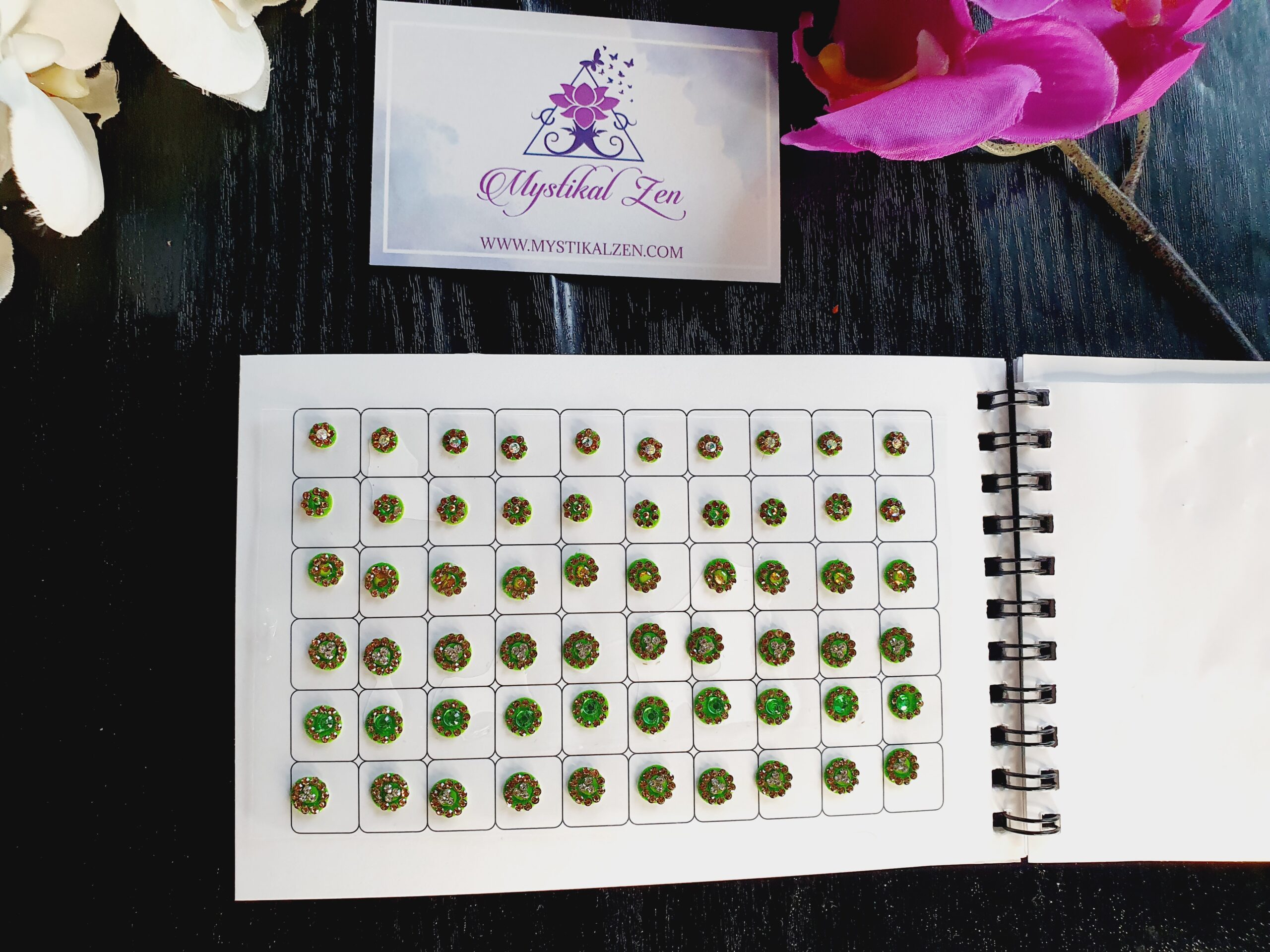 Our quality bindis are self adhesive and are ready to use. We recommend that after use, you put them back in its original packaging for extended wear and reuse. All bindis are delicate, so should be peeled gently out of the package to prevent any damage. Can be used as embellishments for crafts and scrapbooking too.