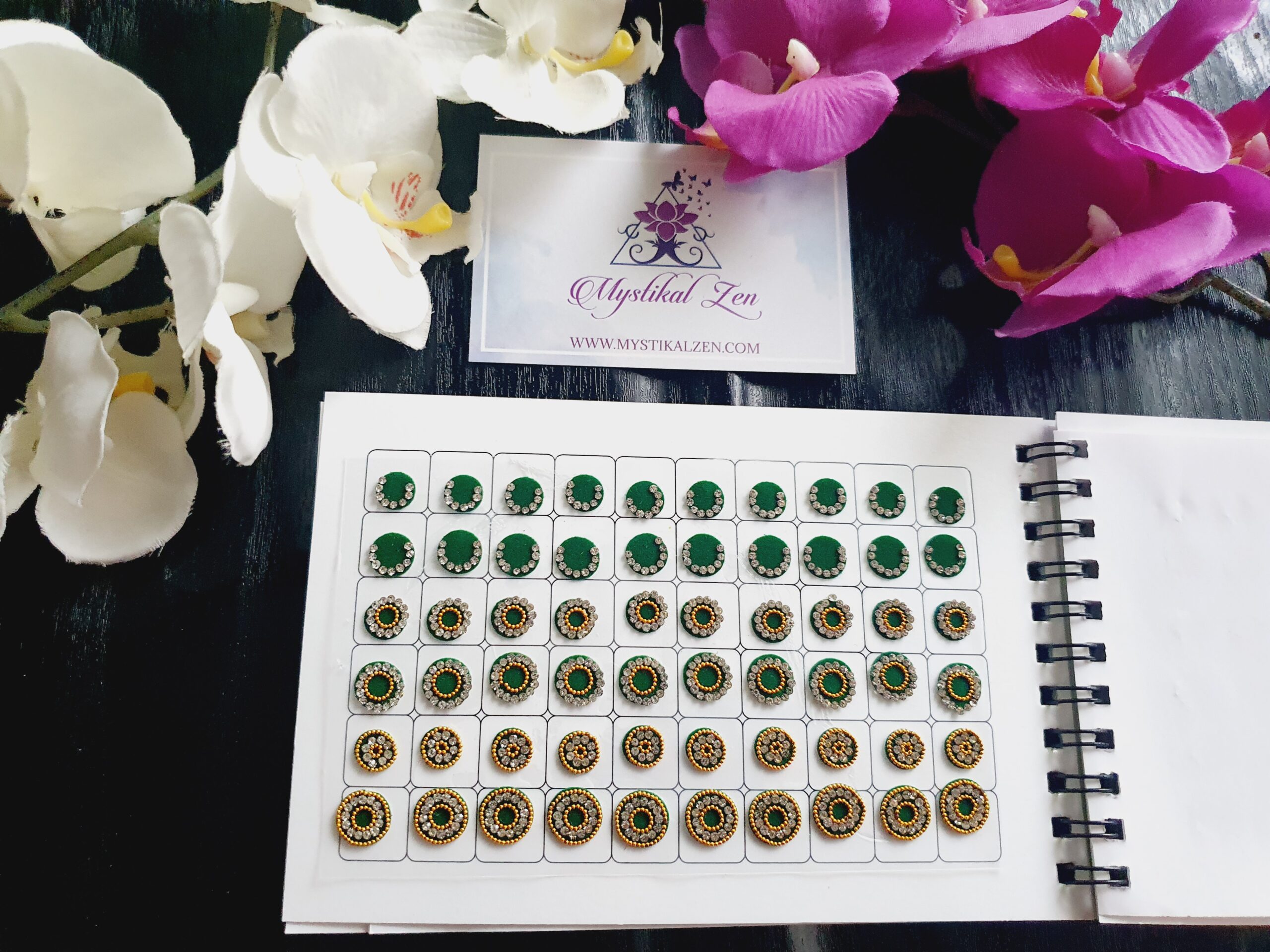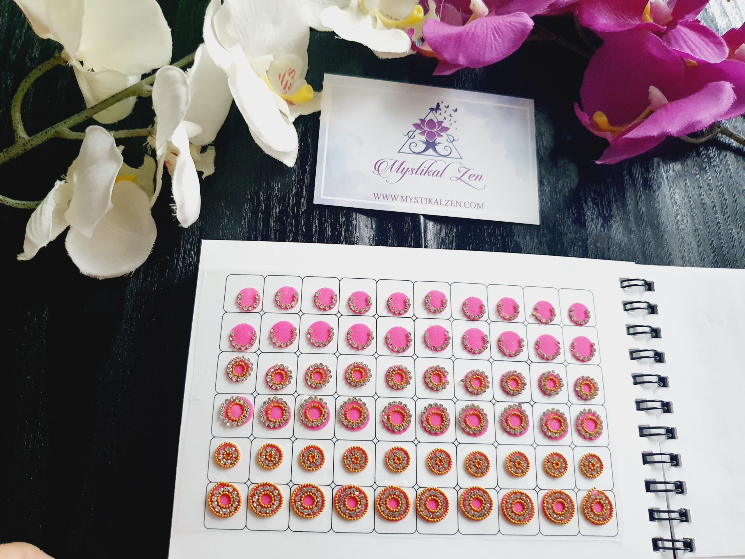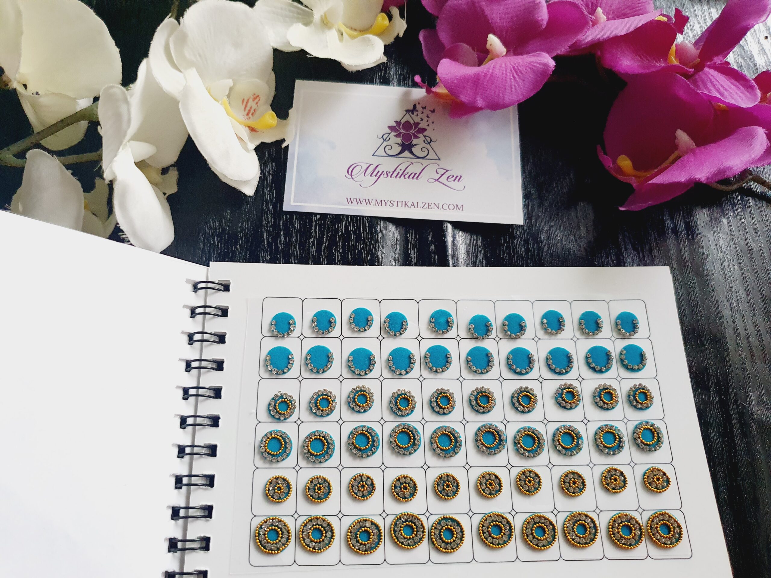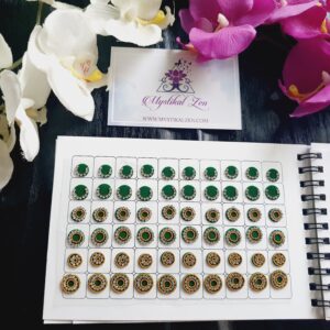 Our quality bindis are self adhesive and are ready to use. We recommend that after use, you put them back in its original packaging for extended wear and reuse. All bindis are delicate, so should be peeled gently out of the package to prevent any damage. Can be used as embellishments for crafts and scrapbooking too.
