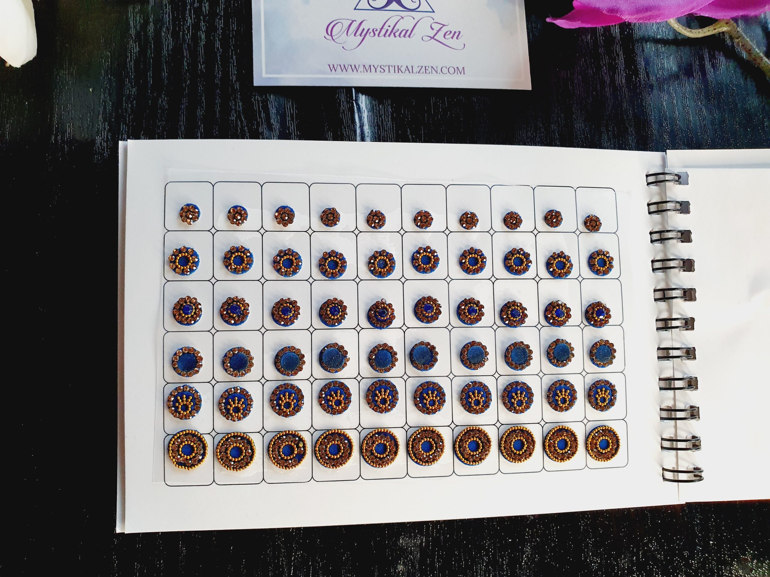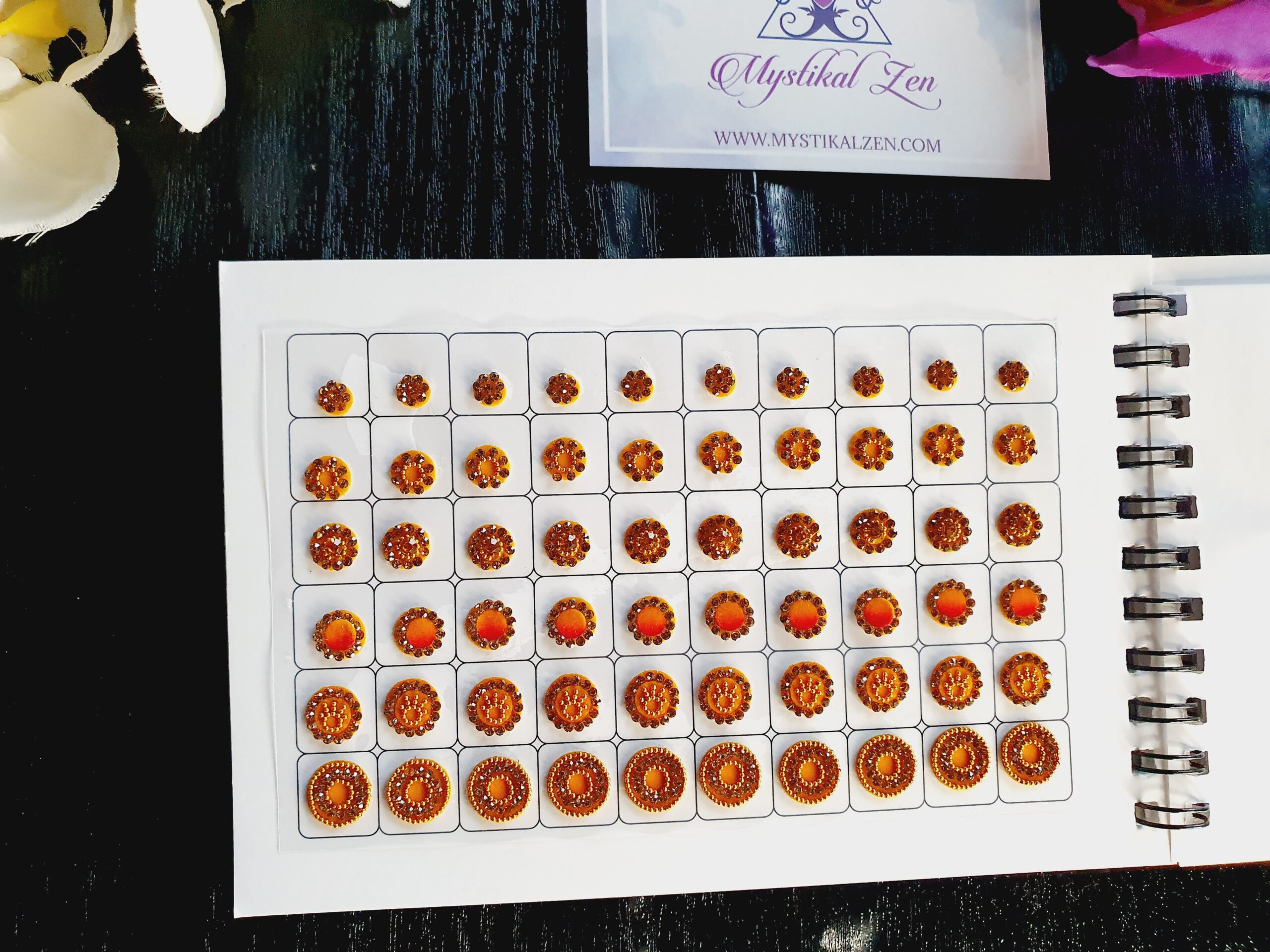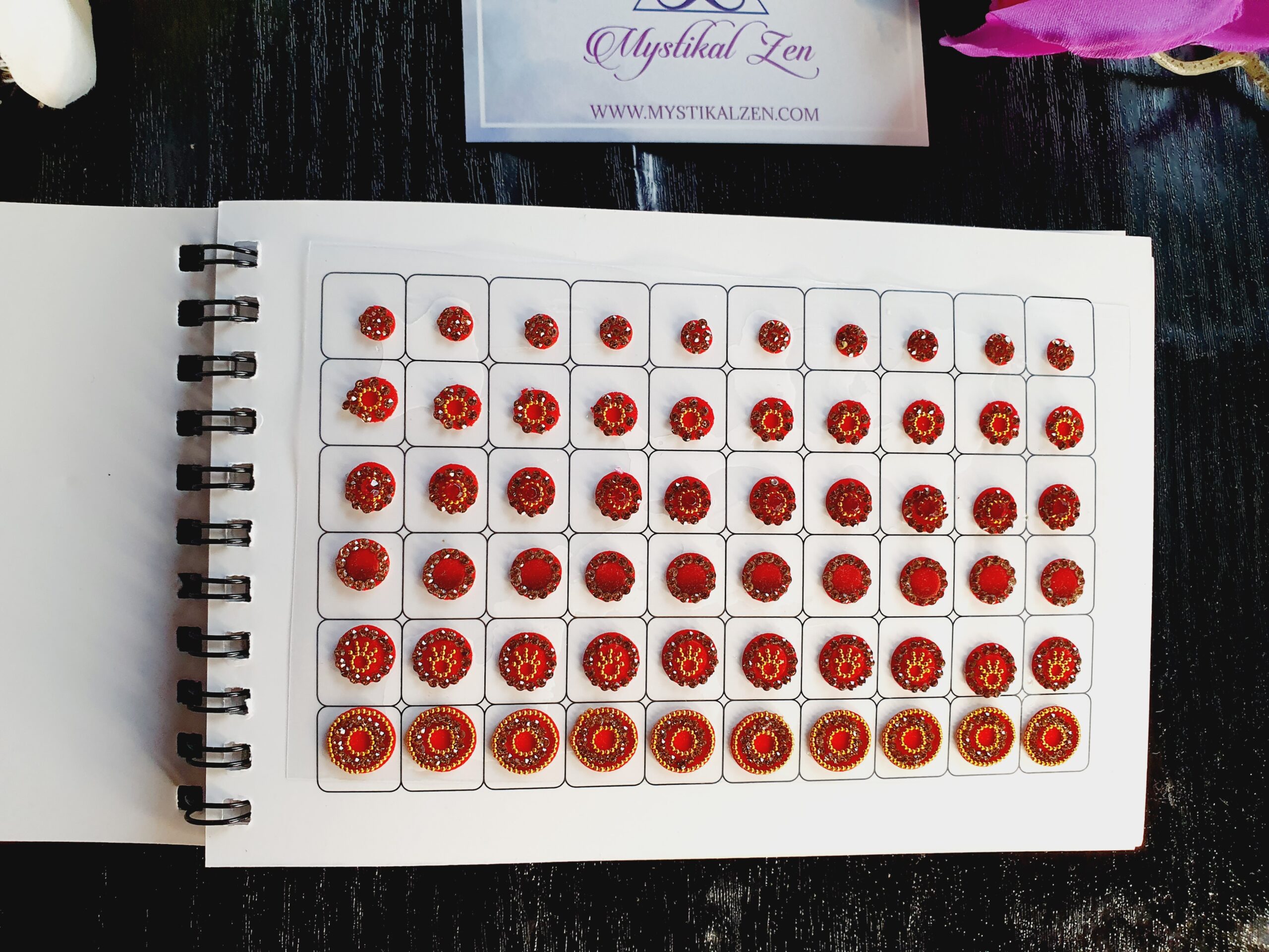 Our quality bindis are self adhesive and are ready to use. We recommend that after use, you put them back in its original packaging for extended wear and reuse. All bindis are delicate, so should be peeled gently out of the package to prevent any damage. Can be used as embellishments for crafts and scrapbooking too.