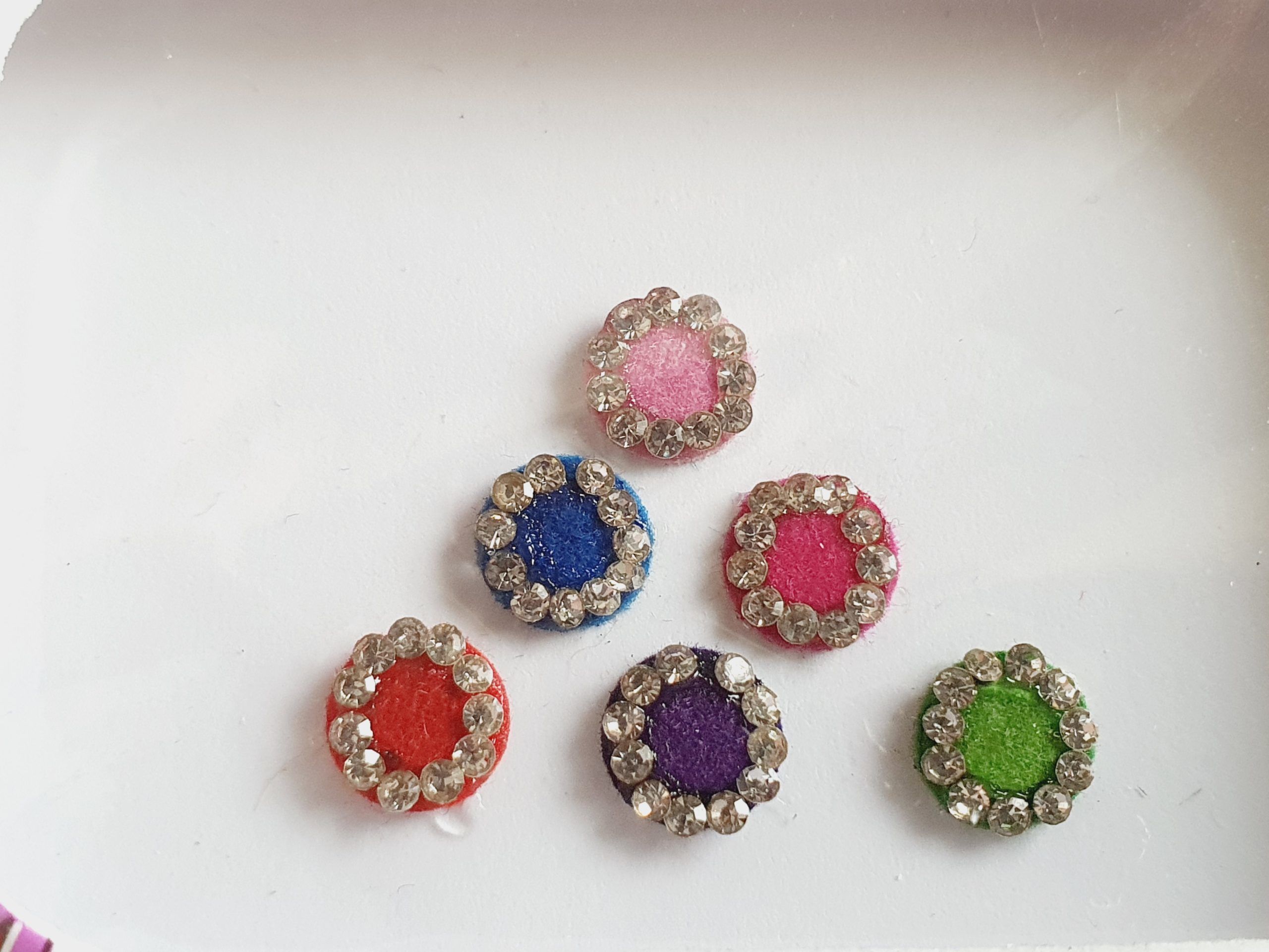 Our quality bindis are self adhesive and are ready to use. We recommend that after use, you put them back in its original packaging for extended wear and reuse. All bindis are delicate, so should be peeled gently out of the package to prevent any damage. Can be used as embellishments for crafts and scrapbooking too.