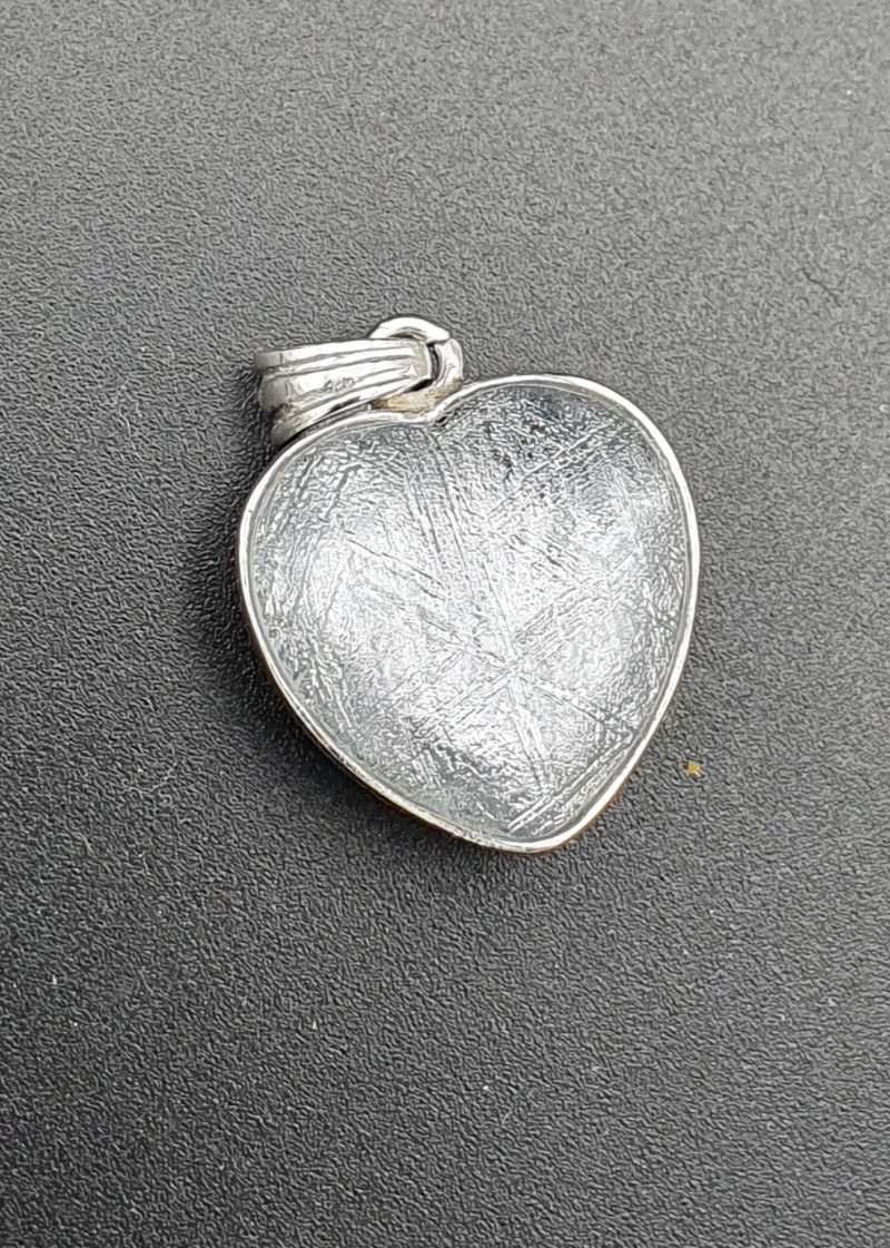 This is a beautiful rare meteorite (muoniomalusta) small silver heart pendent set in 925 sterling silver. Making it a beautiful gift for someone special. It is a mesmerising piece and the energy is out of this world when used