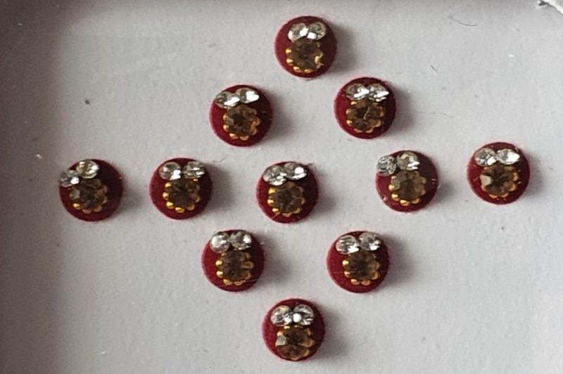 Our quality bindis are self adhesive and are ready to use. We recommend that after use, you put them back in its original packaging for extended wear and reuse. All bindis are delicate, so should be peeled gently out of the package to prevent any damage. Can be used as embellishments for crafts and scrapbooking too.