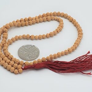 This mala consists of 108 Rudrayani beads strung together on red thread.