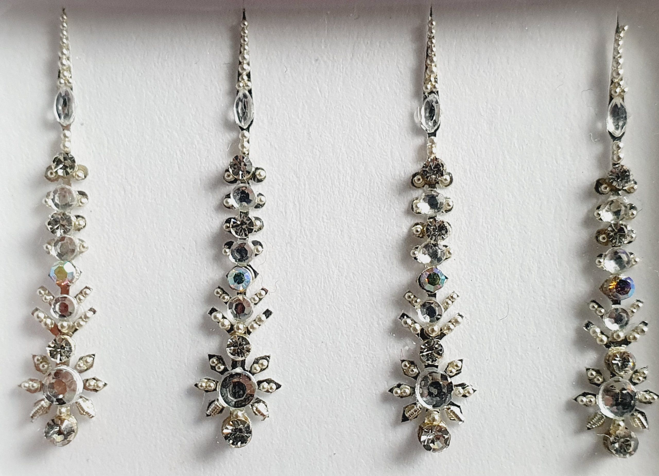 Pack Contains: 4 long bindis with diamante crystal stones.