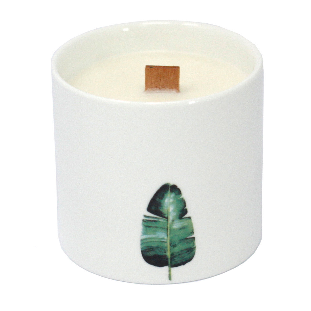 Botanical Candles are presented in round ceramic jars that can be reused. Each candle contains a wooden wick instead of a traditional wick