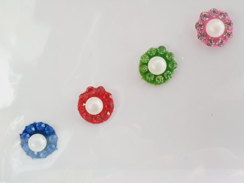 Our quality bindis are self adhesive and are ready to use. We recommend that after use, you put them back in its original packaging for extended wear and reuse. All bindis are delicate, so should be peeled gently out of the package to prevent any damage. Can be used as embellishments for crafts and scrapbooking too.