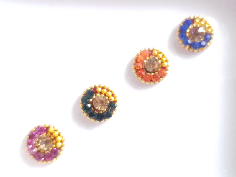 Our quality bindis are self adhesive and are ready to use. We recommend that after use, you put them back in its original packaging for extended wear and reuse. All bindis are delicate, so should be peeled gently out of the package to prevent any damage. Can be used as embellishments for crafts and scrapbooking too.