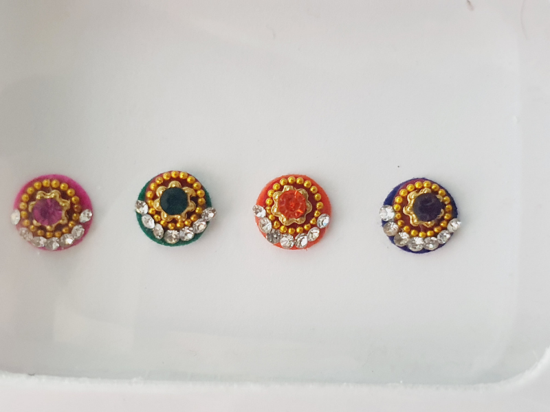 Our quality bindis are self adhesive and are ready to use. We recommend that after use, you put them back in its original packaging for extended wear and reuse. All bindis are delicate, so should be peeled gently out of the package to prevent any damage. Can be used as embellishments for crafts and scrapbooking too.