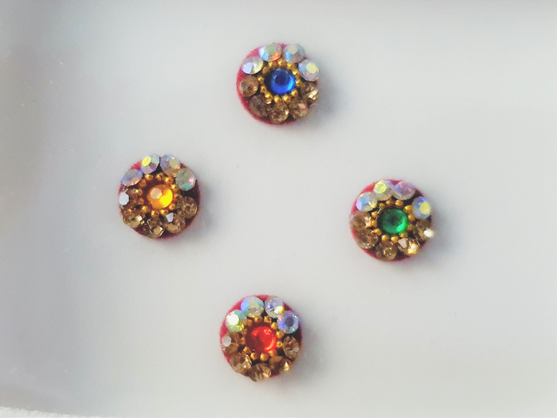 Our quality bindis are self adhesive and are ready to use. We recommend that after use, you put them back in its original packaging for extended wear and reuse. All bindis are delicate, so should be peeled gently out of the package to prevent any damage. Can be used as embellishments for crafts and scrapbooking too.