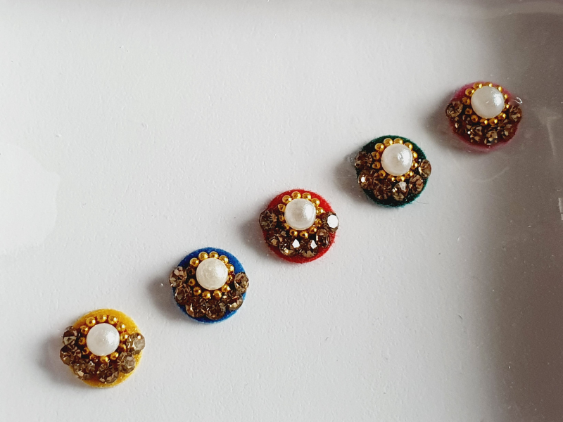 Our quality bindis are self adhesive and are ready to use. We recommend that after use, you put them back in its original packaging for extended wear and reuse. All bindis are delicate, so should be peeled gently out of the package to prevent any damage. Can be used as embellishments for crafts and scrapbooking too.