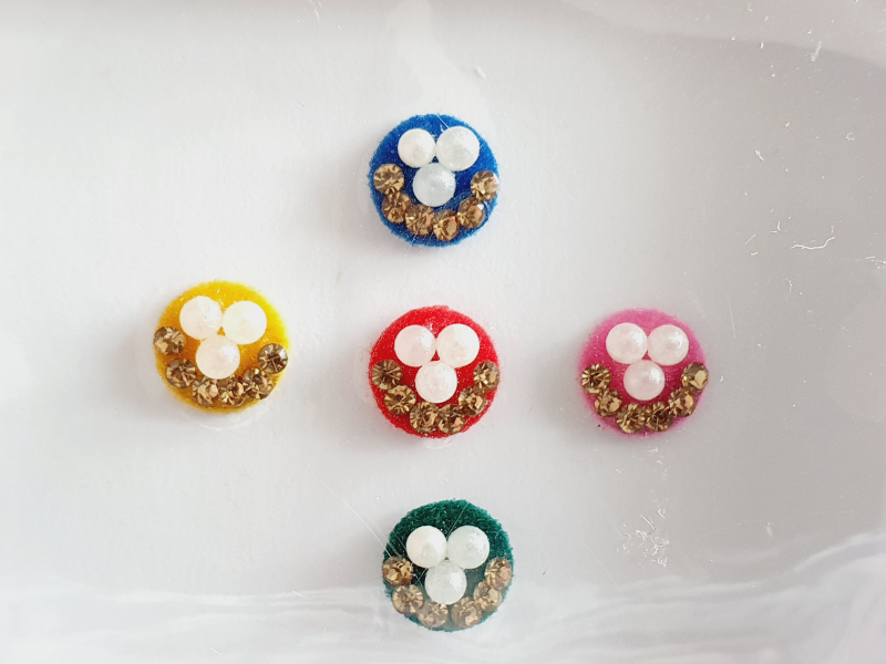 Our quality bindis are self adhesive and are ready to use. We recommend that after use, you put them back in its original packaging for extended wear and reuse. All bindis are delicate, so should be peeled gently out of the package to prevent any damage. Can be used as embellishments for crafts and scrapbooking too.