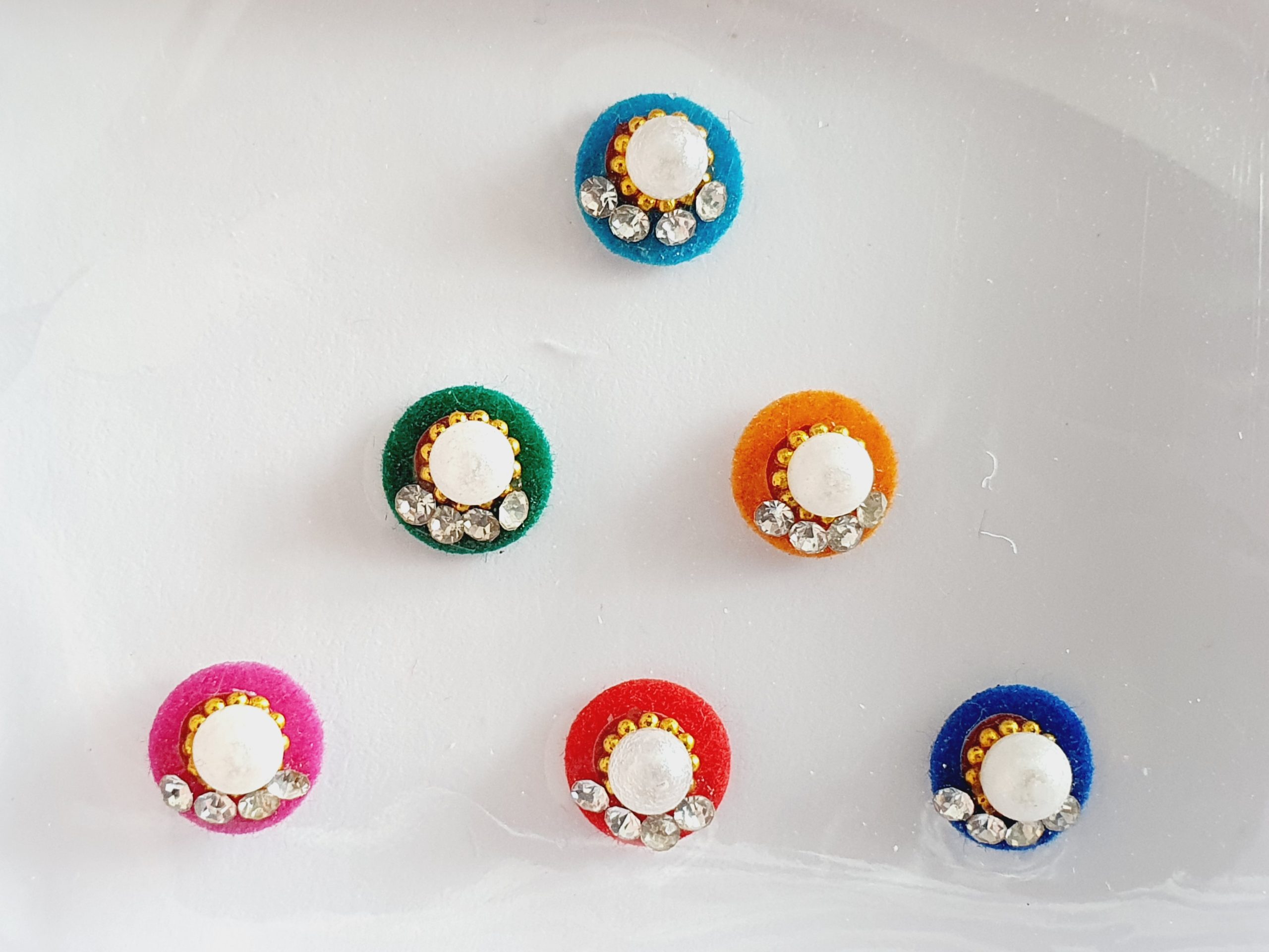 Our quality bindis are self adhesive and are ready to use. We recommend that after use, you put them back in its original packaging for extended wear and reuse. All bindis are delicate, so should be peeled gently out of the package to prevent any damage. Can be used as embellishments for crafts and scrapbooking too.