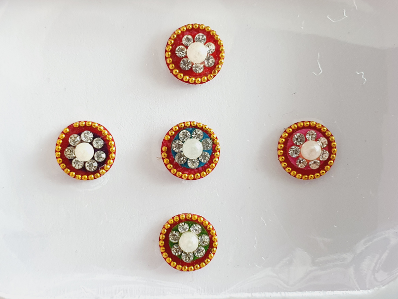 Our quality bindis are self adhesive and are ready to use. We recommend that after use, you put them back in its original packaging for extended wear and reuse. All bindis are delicate, so should be peeled gently out of the package to prevent any damage. Can be used as embellishments for crafts and scrapbooking too.