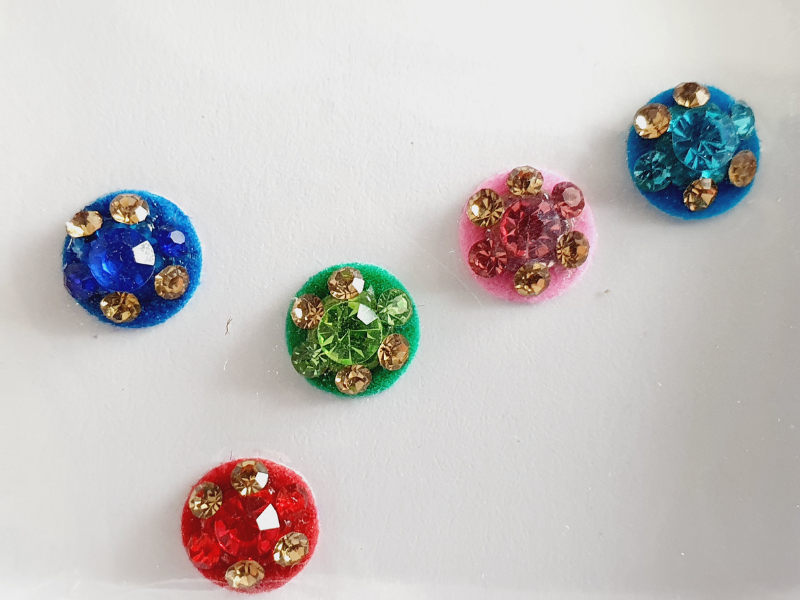 Our quality bindis are self adhesive and are ready to use. We recommend that after use, you put them back in its original packaging for extended wear and reuse. All bindis are delicate, so should be peeled gently out of the package to prevent any damage. Can be used as embellishments for crafts and scrapbooking too.